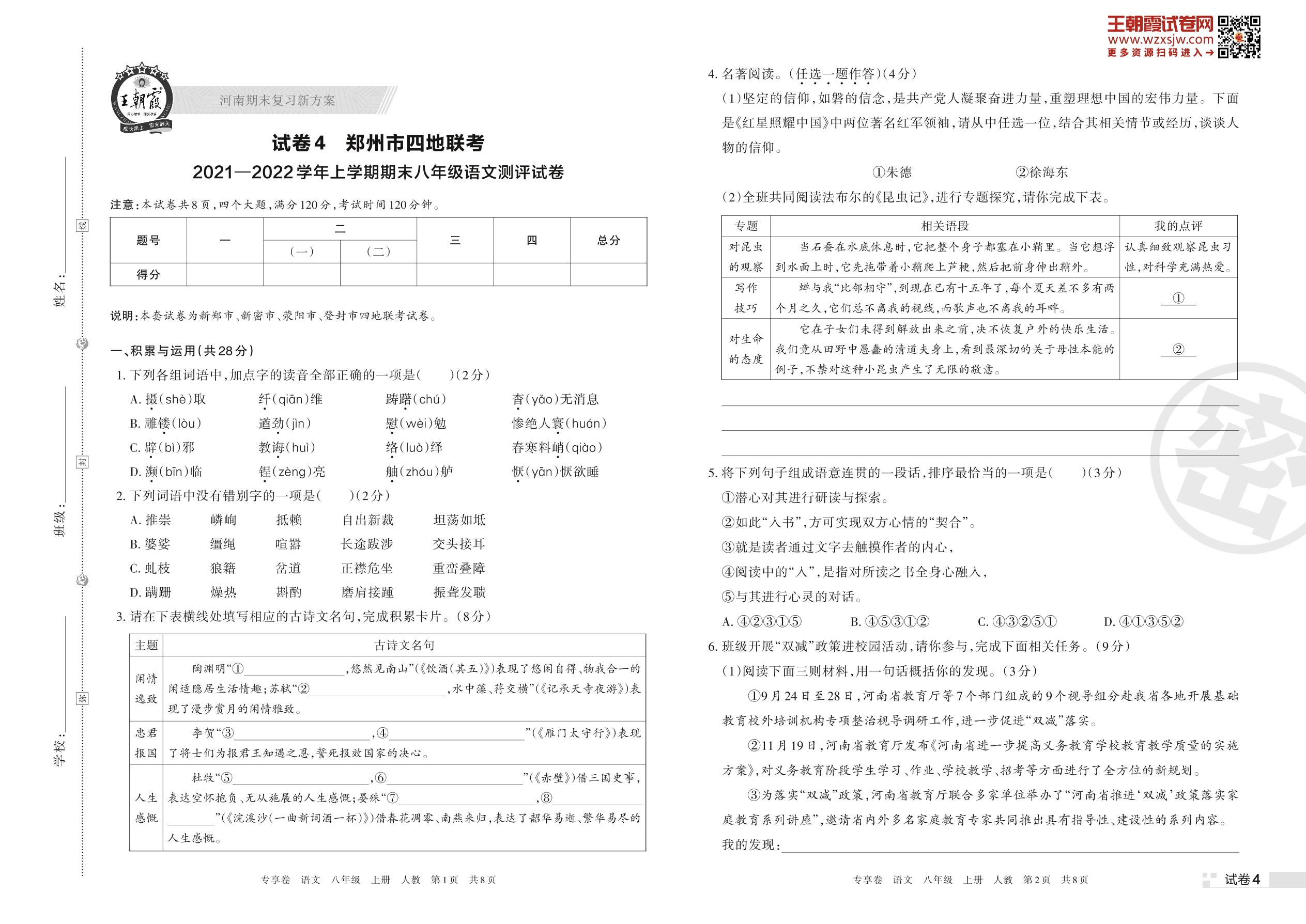 郑州市四地联考2021—2022学年上学期期末八年级语文测评试卷(人教版)_R221126235023843【4】