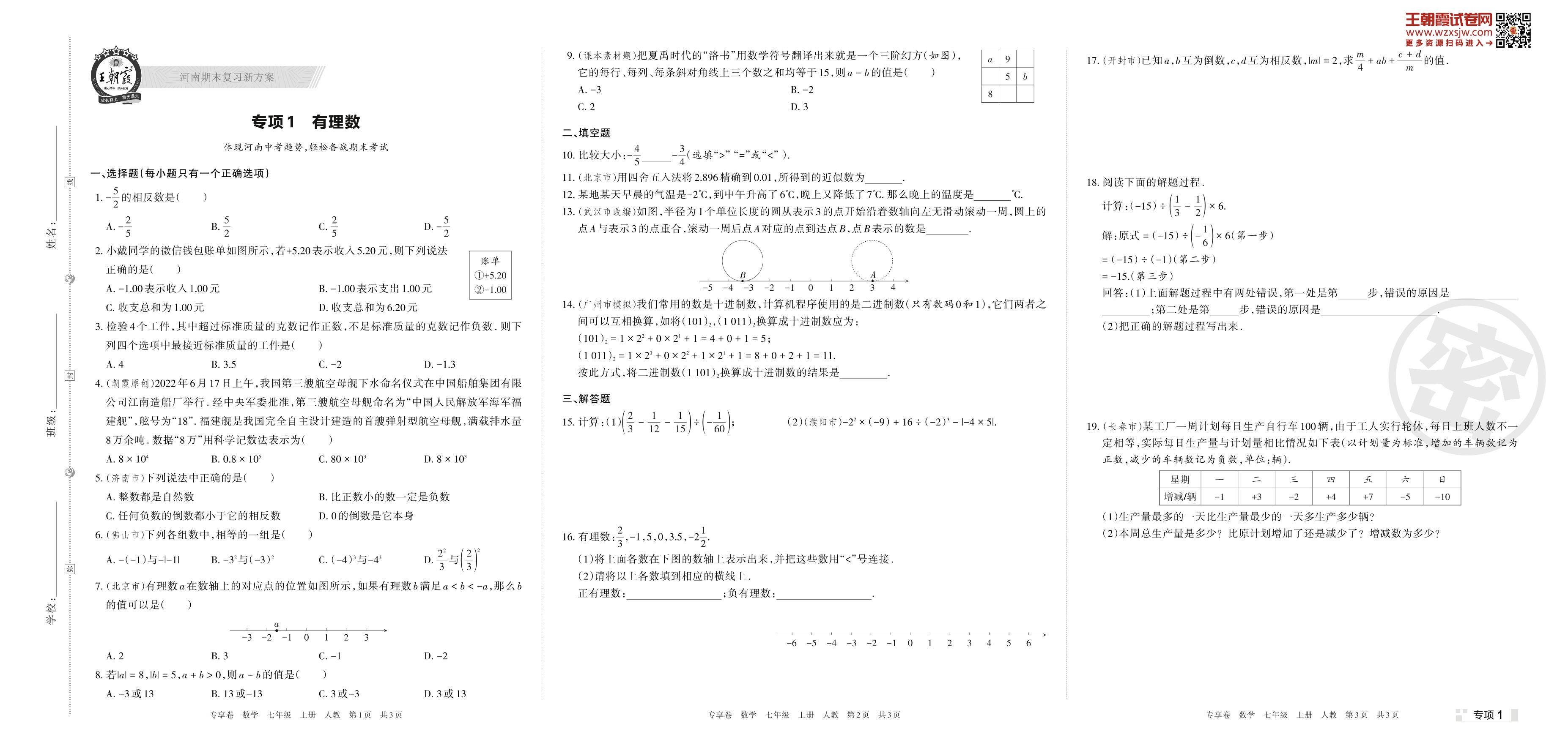 王朝霞期末专项卷——有理数七年级上册数学(人教版)【1】
