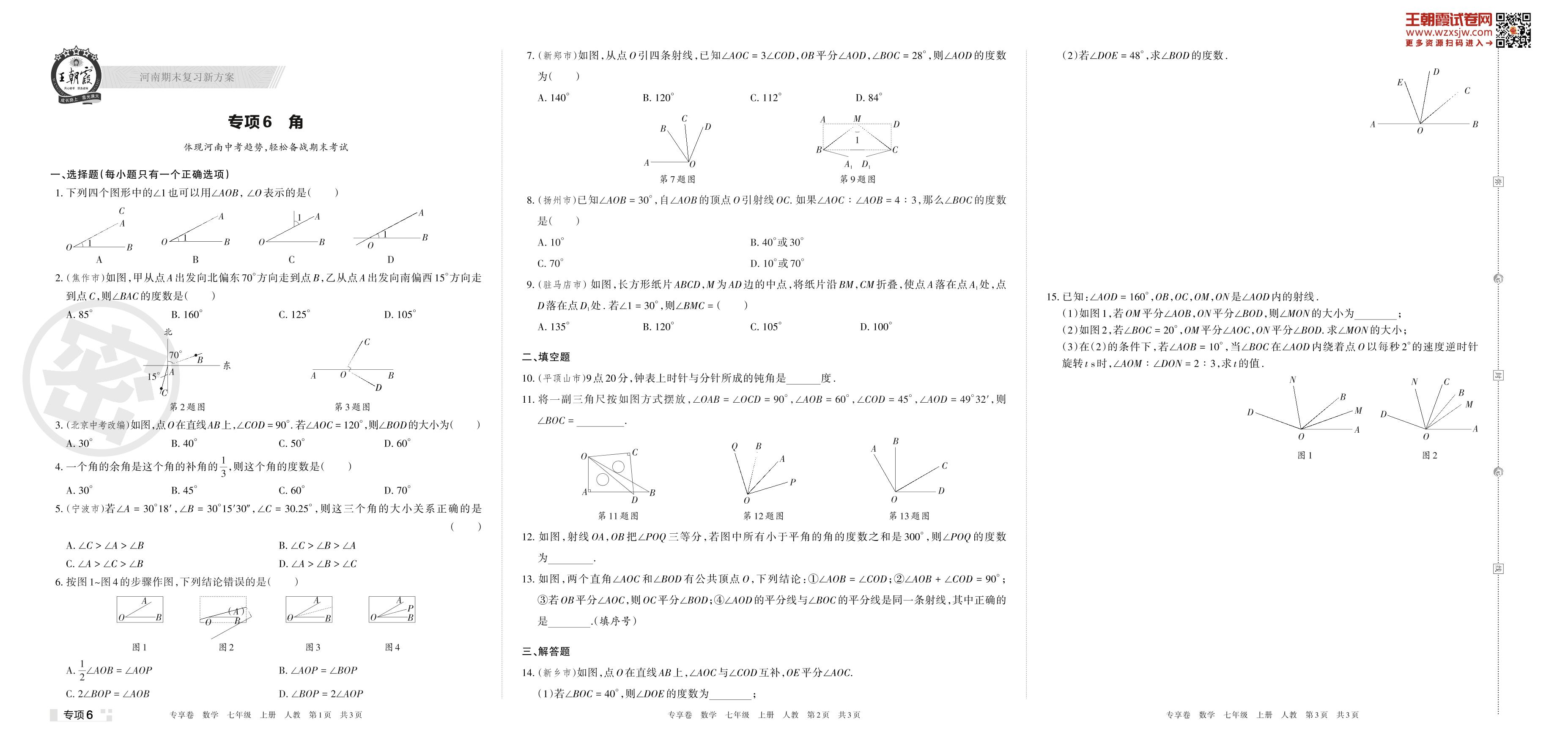 王朝霞期末专项卷——角七年级上册数学(人教版)【6】