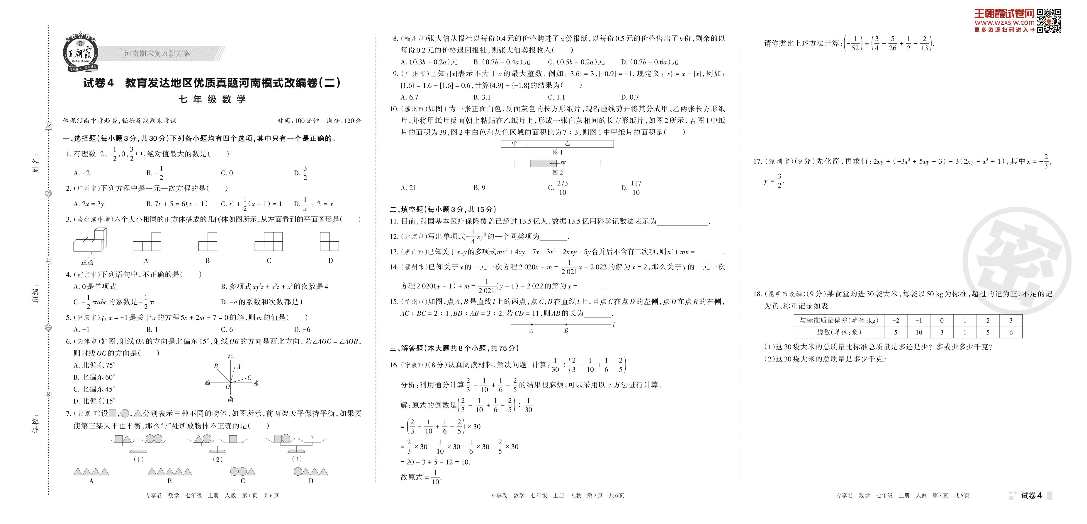 教育发达地区优质真题河南模式改编卷(二)七年级上册数学(人教版)【4】