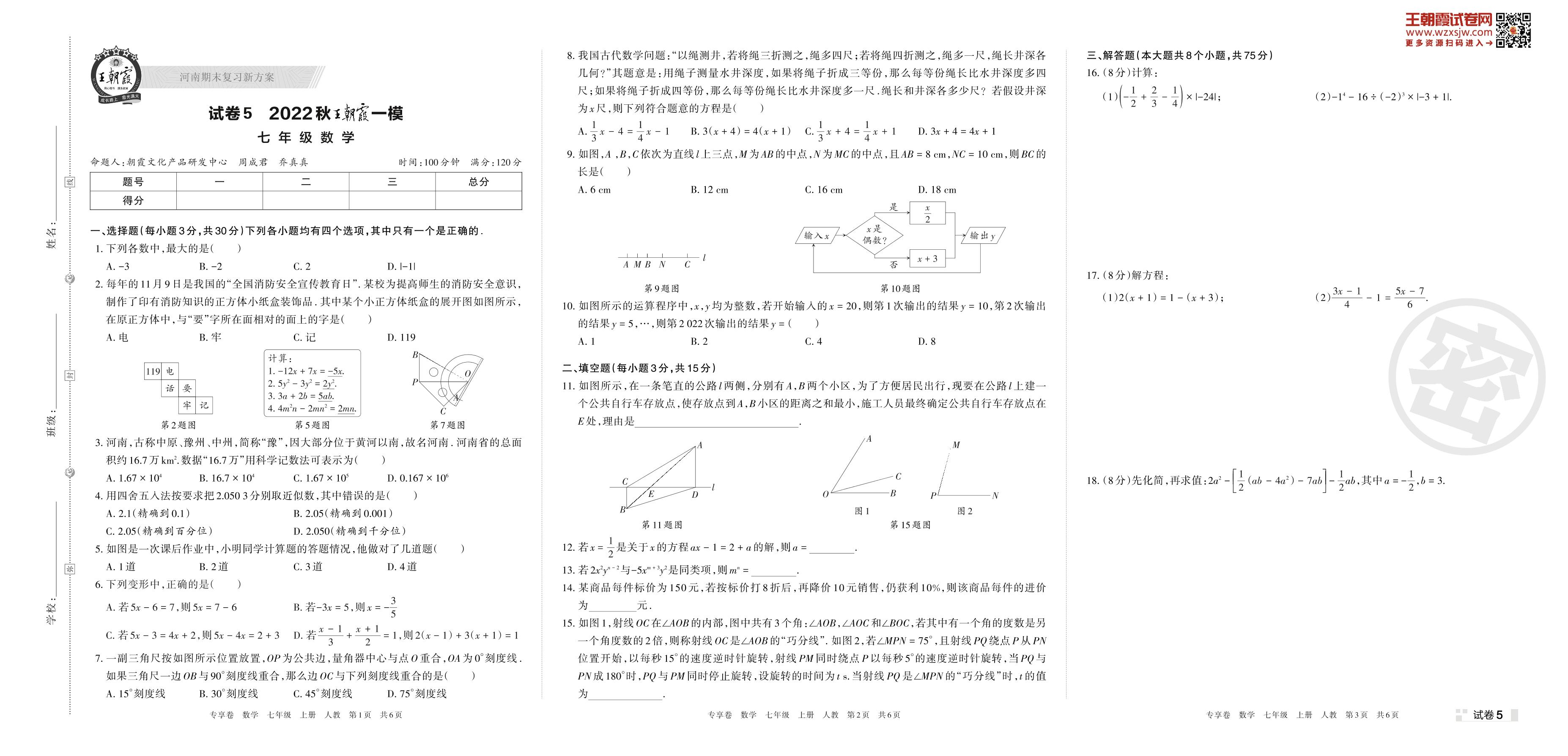 王朝霞期末模拟卷七年级上册数学(人教版)_R221127110700341【5】