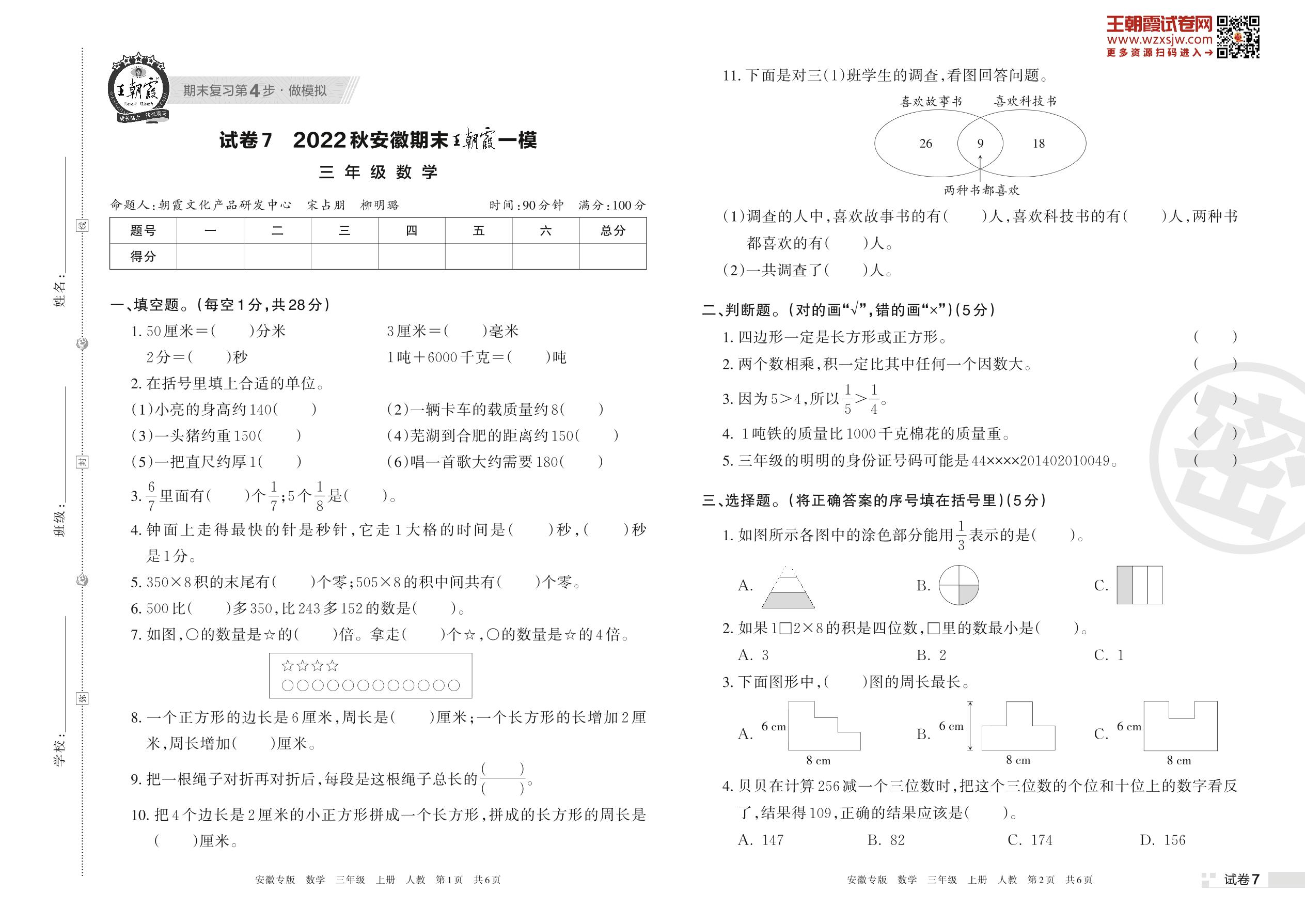 王朝霞期末模拟卷三年级上册数学(人教版)_R221127112910095【7】