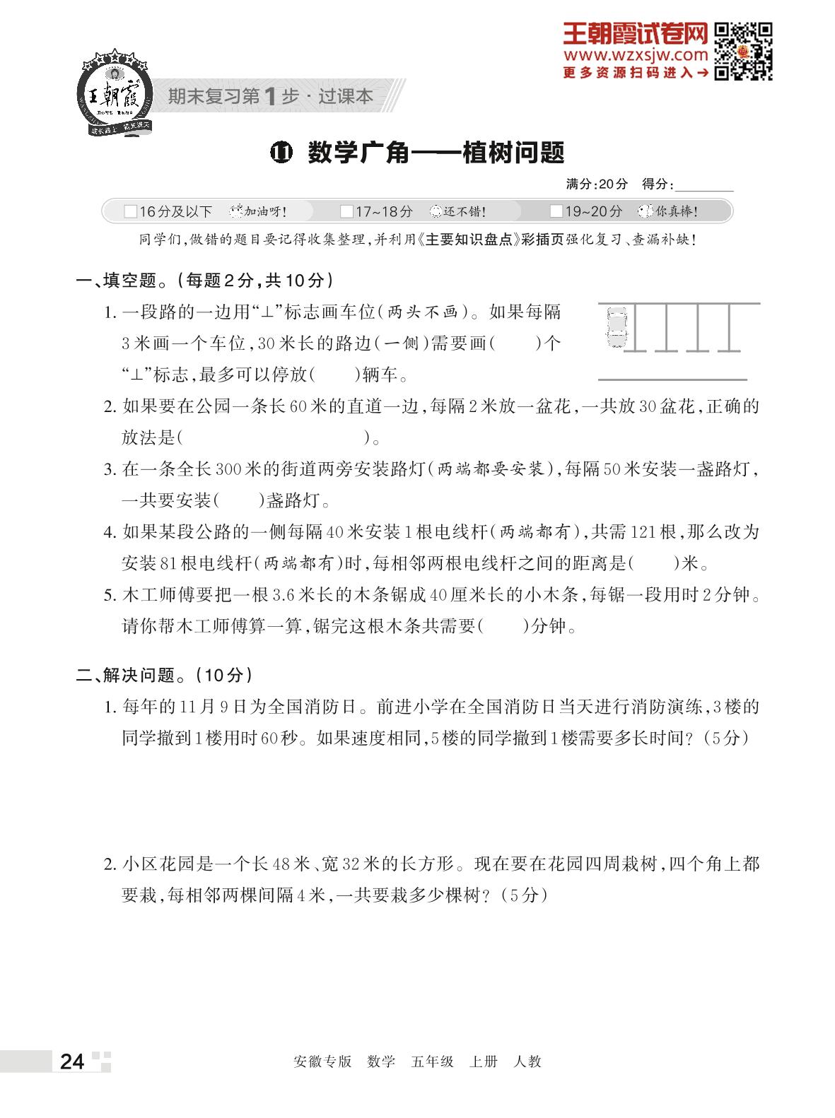 王朝霞期末过课本——11 数学广角 植树问题五年级上册数学(人教版)_R221127115335262