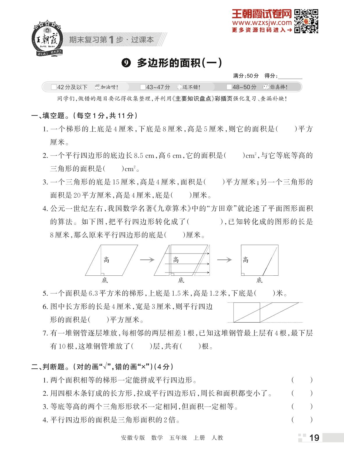 王朝霞期末过课本——9 多边形的面积(一)五年级上册数学(人教版)_R221127115336063
