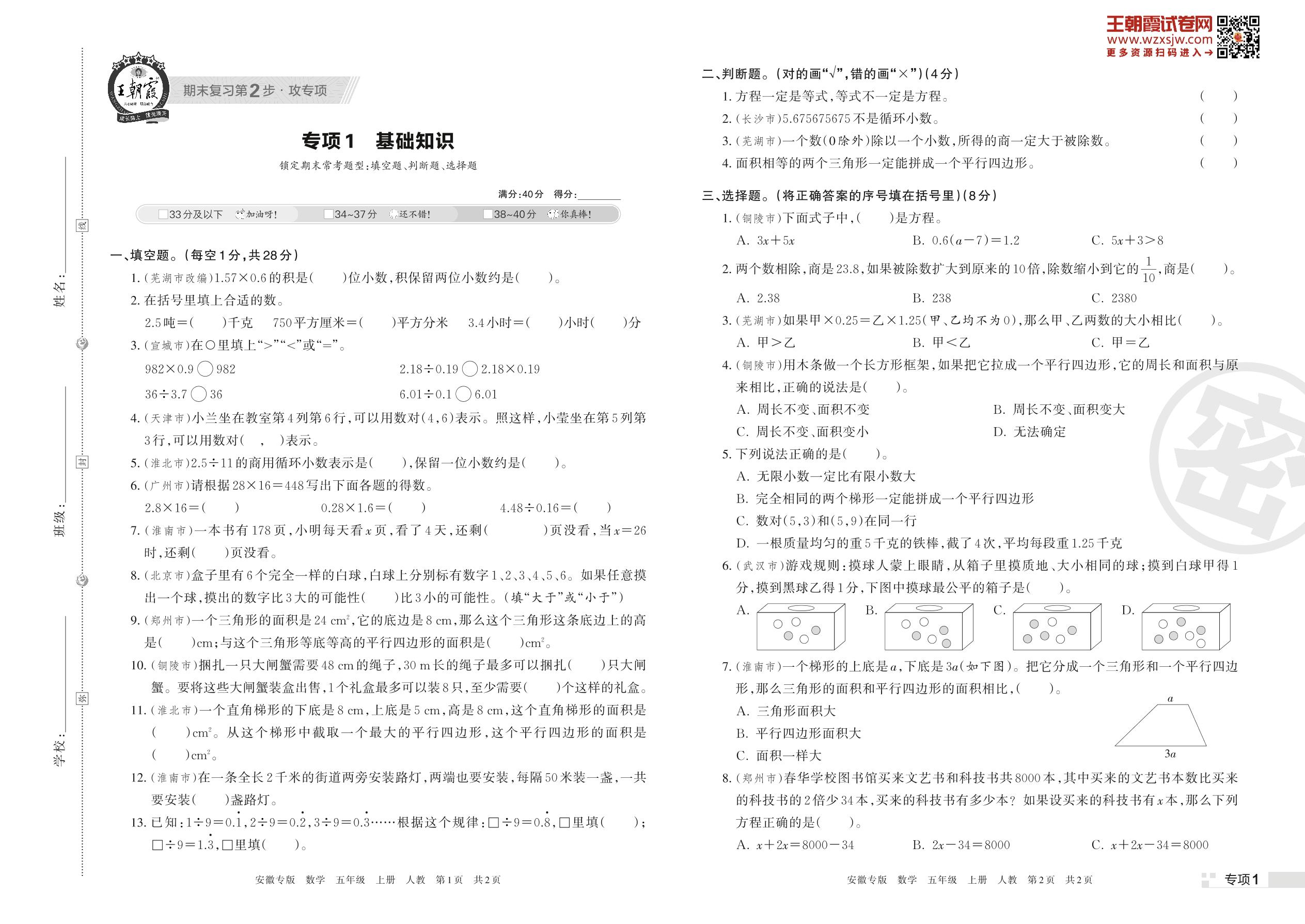 王朝霞期末专项卷——基础知识五年级上册数学(人教版)_R221127115337107【1】