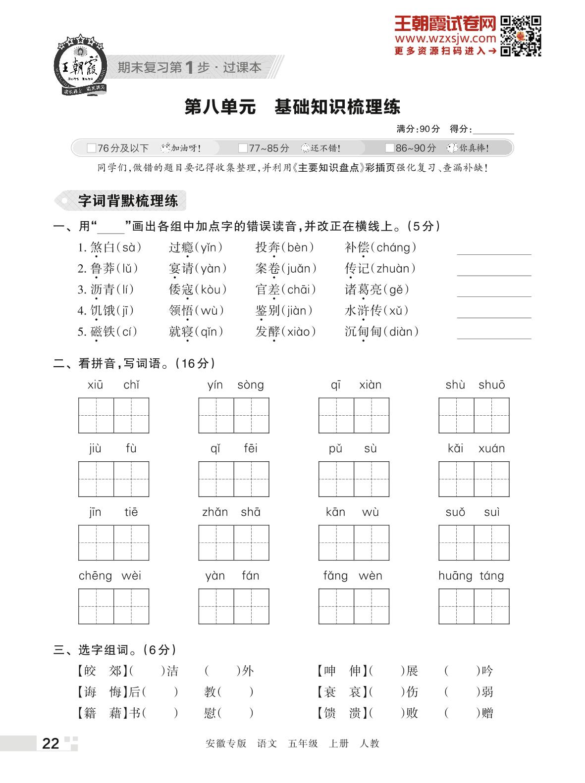 王朝霞期末过课本——第八单元 基础知识梳理练五年级上册语文(人教版)_R221127120915850