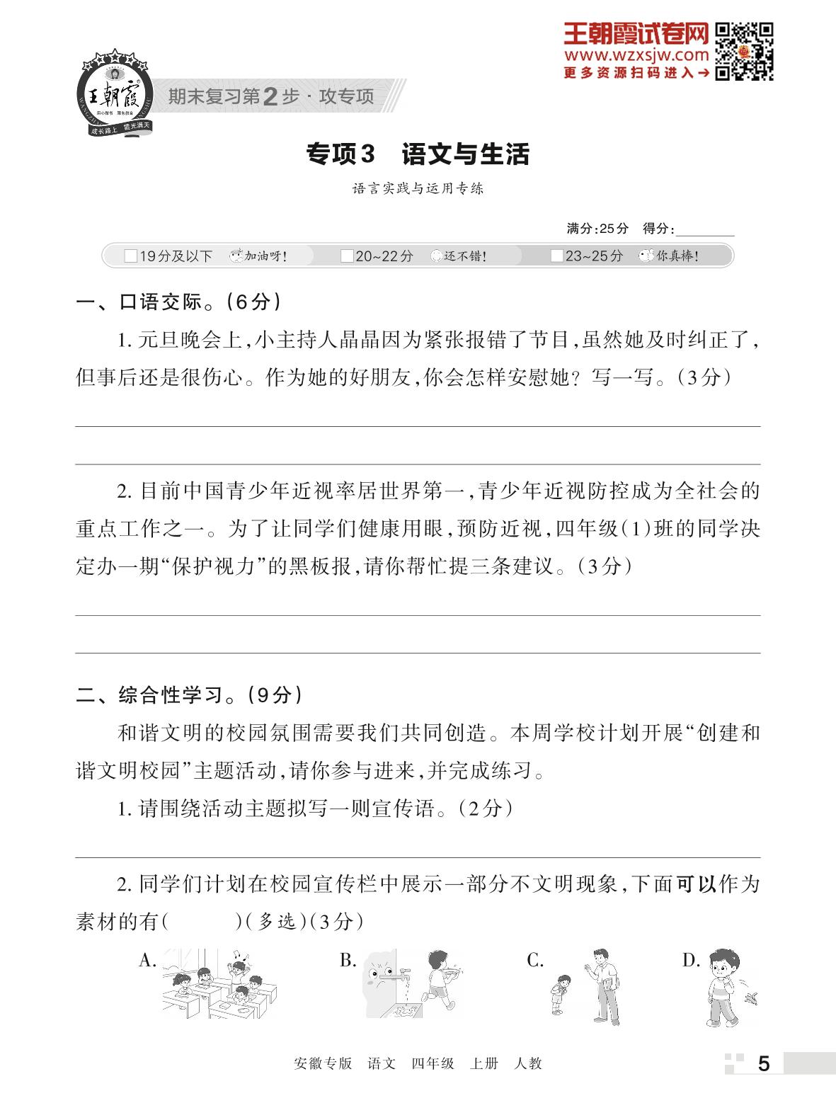 王朝霞期末专项卷——语文与生活四年级上册语文(人教版)【3】