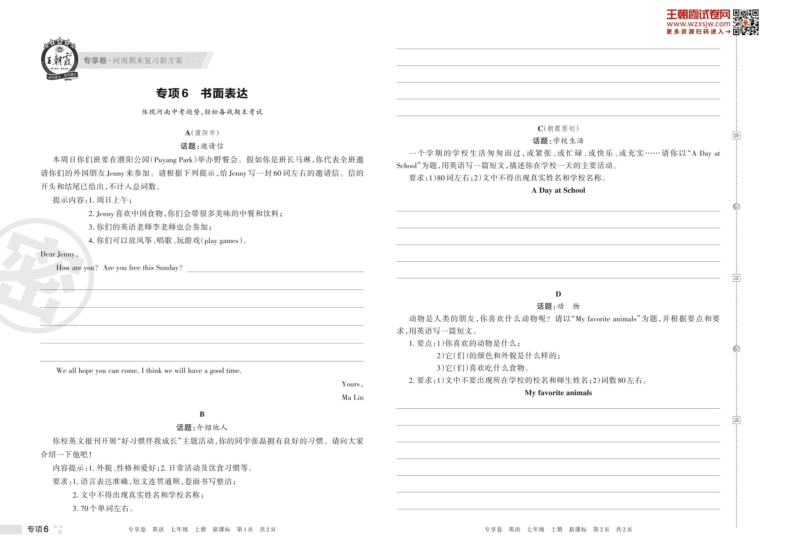 王朝霞期末专项卷——书面表达七年级上册英语(新课标版)_R221127125420351【6】