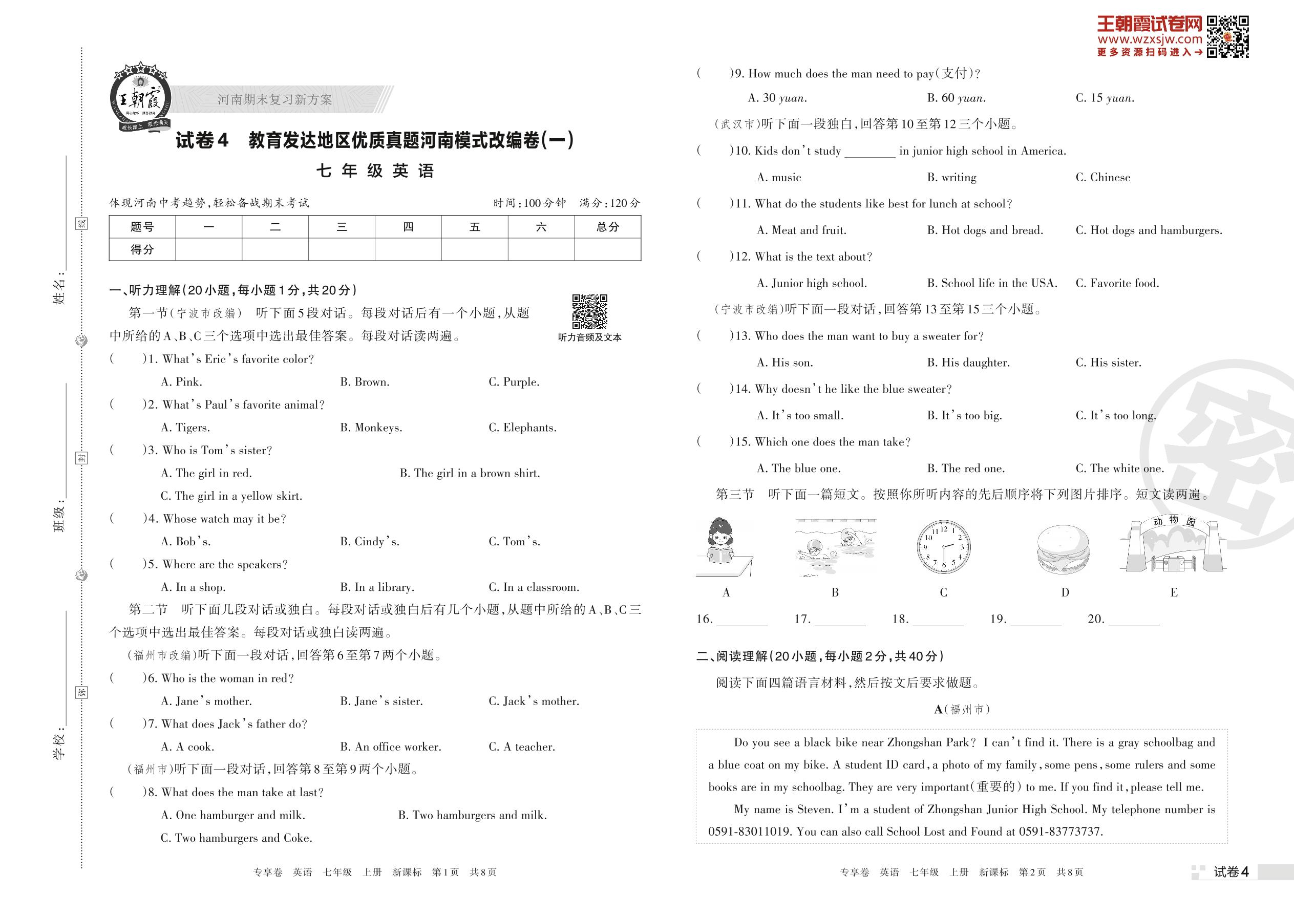 教育发达地区优质真题河南模式改编卷(一)七年级上册英语(新课标版)【4】