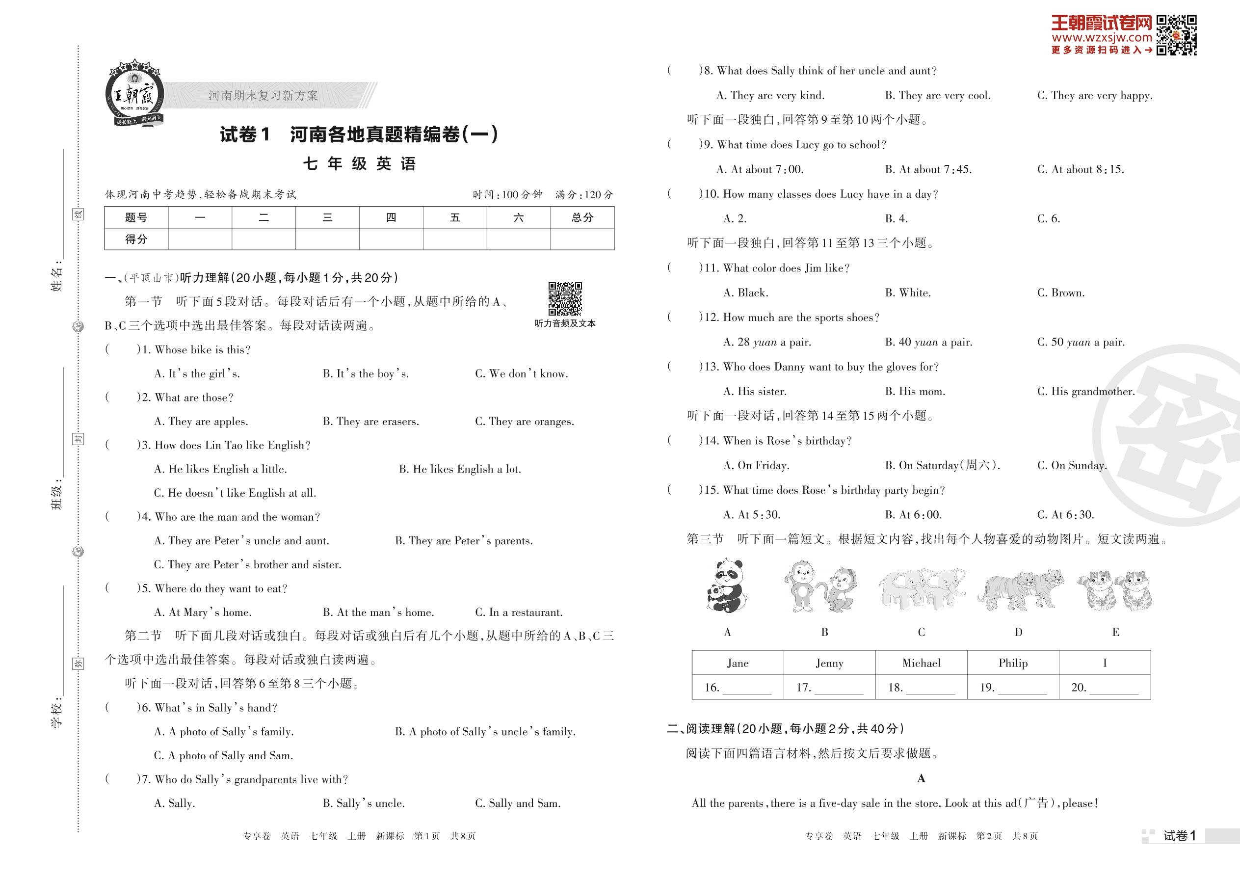 河南各地真题精编卷(一)七年级上册英语(新课标版)【1】