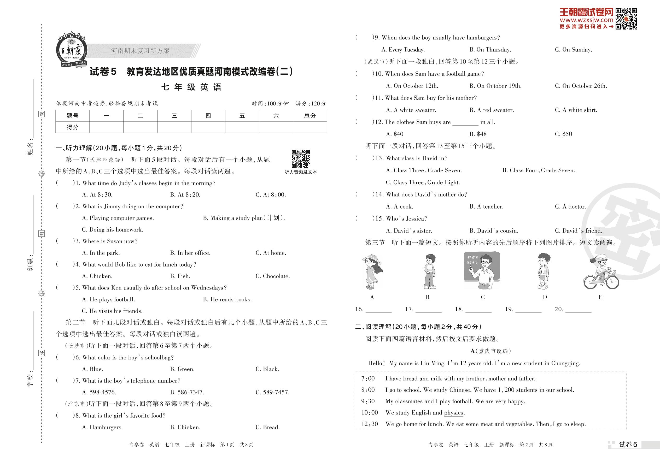 教育发达地区优质真题河南模式改编卷(二)七年级上册英语(新课标版)【5】