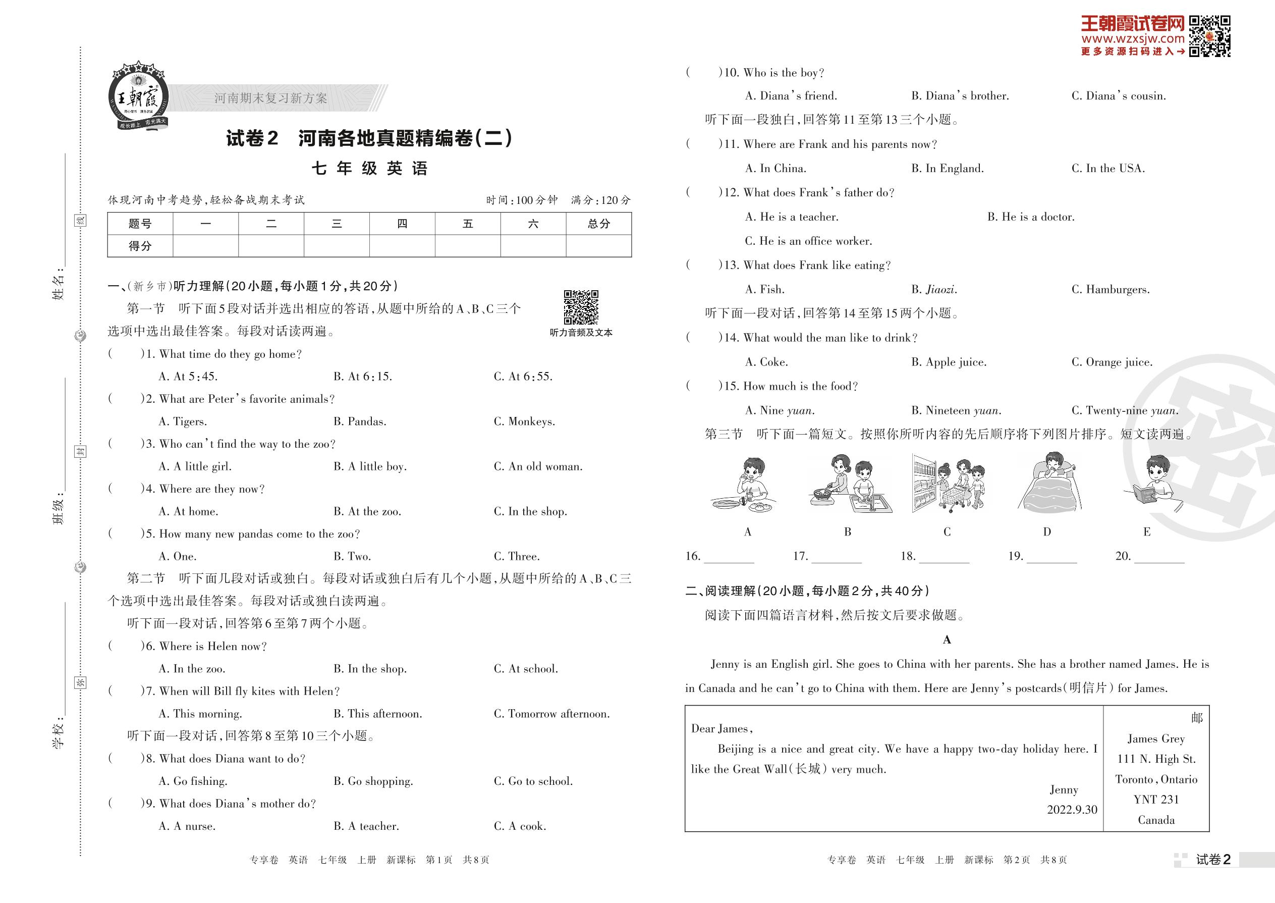 河南各地真题精编卷(二)七年级上册英语(新课标版)【2】