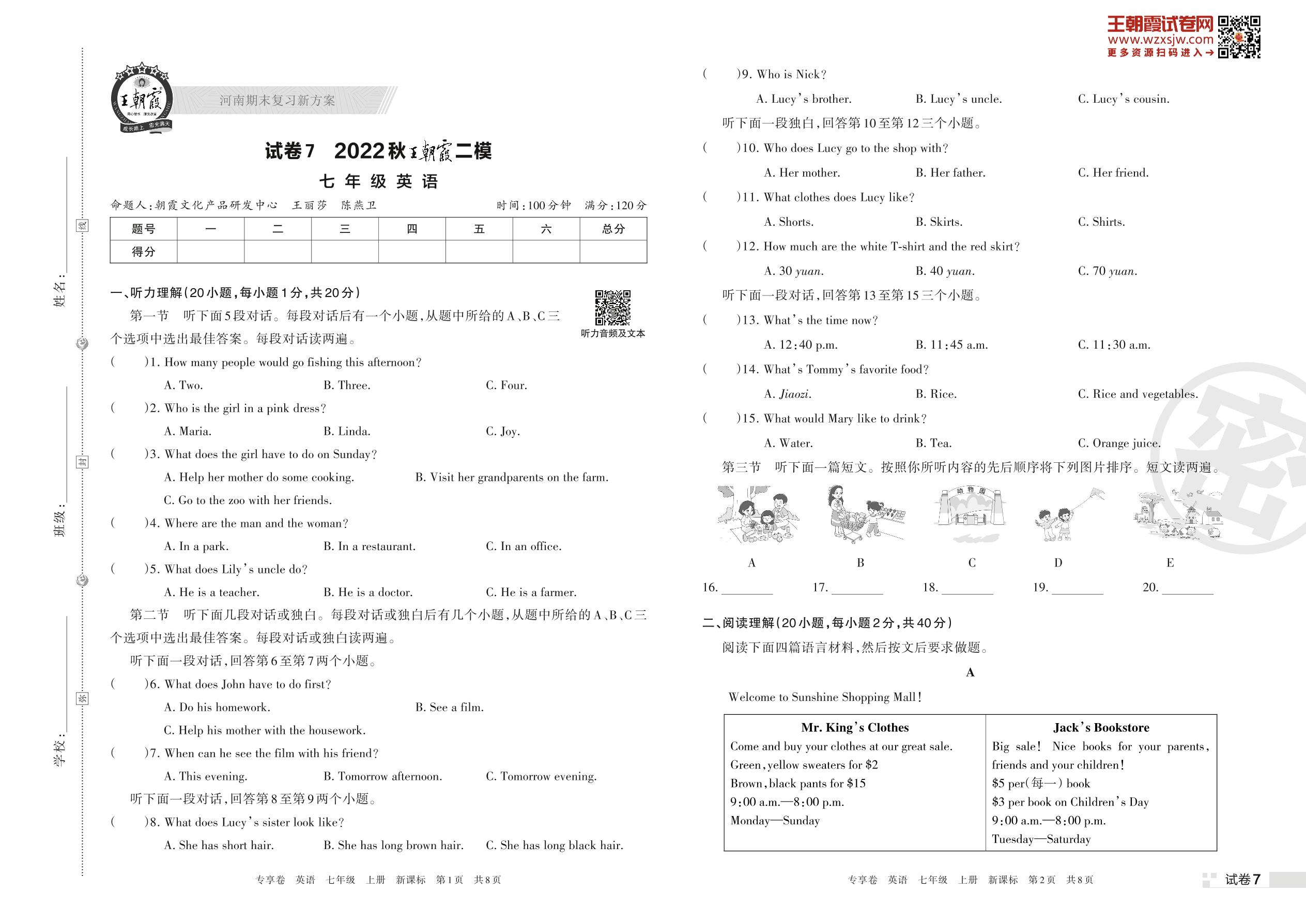 王朝霞期末模拟卷七年级上册英语(新课标版)_R221127125421399【7】