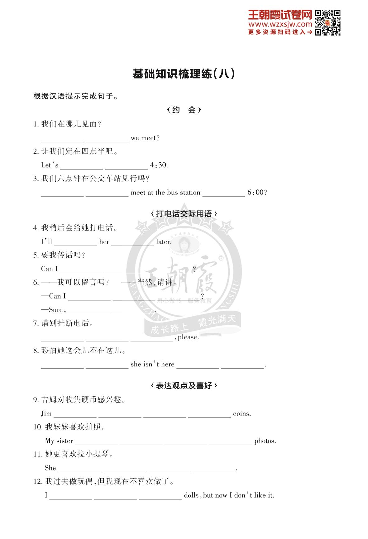 王朝霞期末过基础——基础知识梳理练(八)八年级上册英语(新课标版)