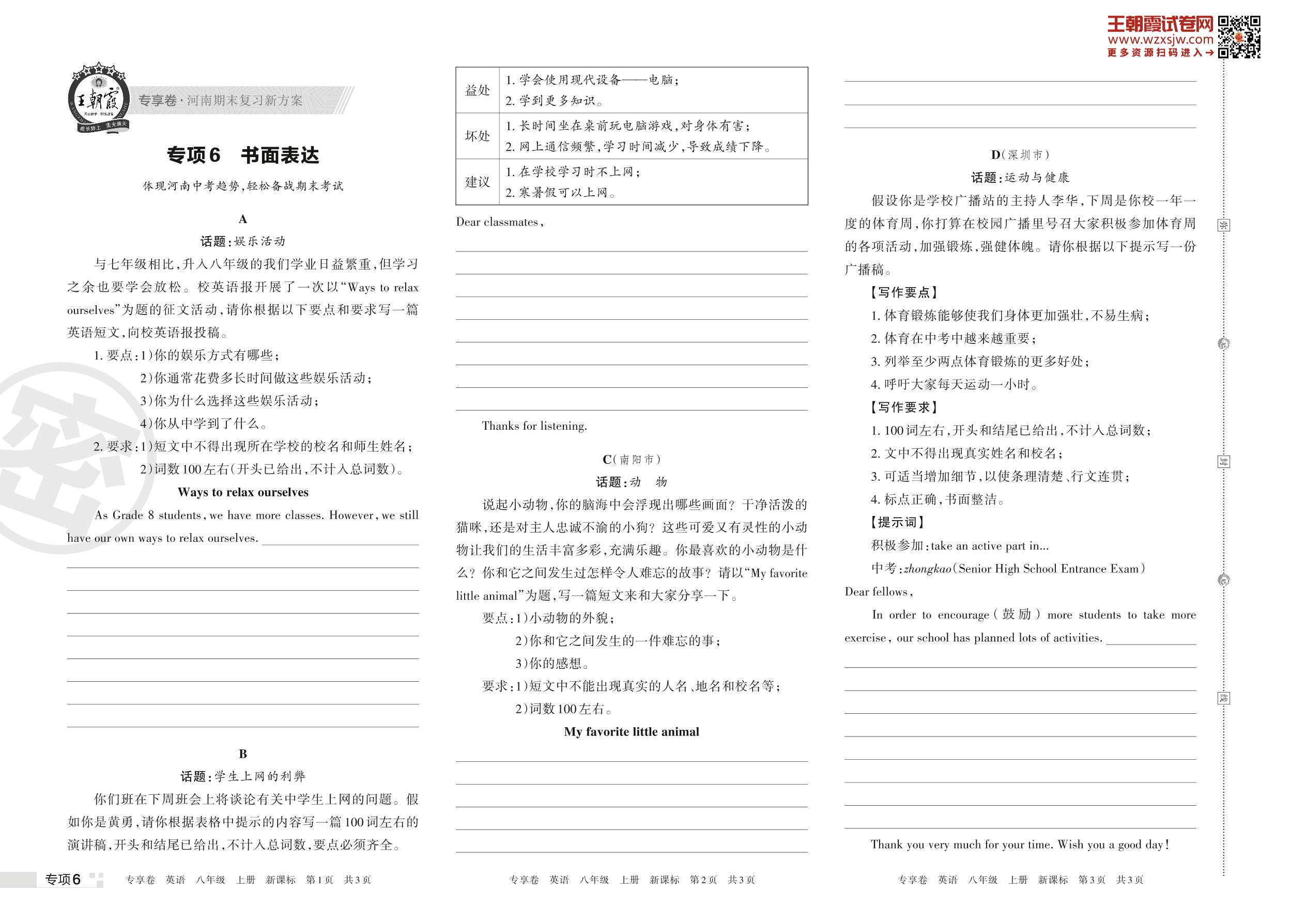 王朝霞期末专项卷——书面表达八年级上册英语(新课标版)_R221127131228920【6】