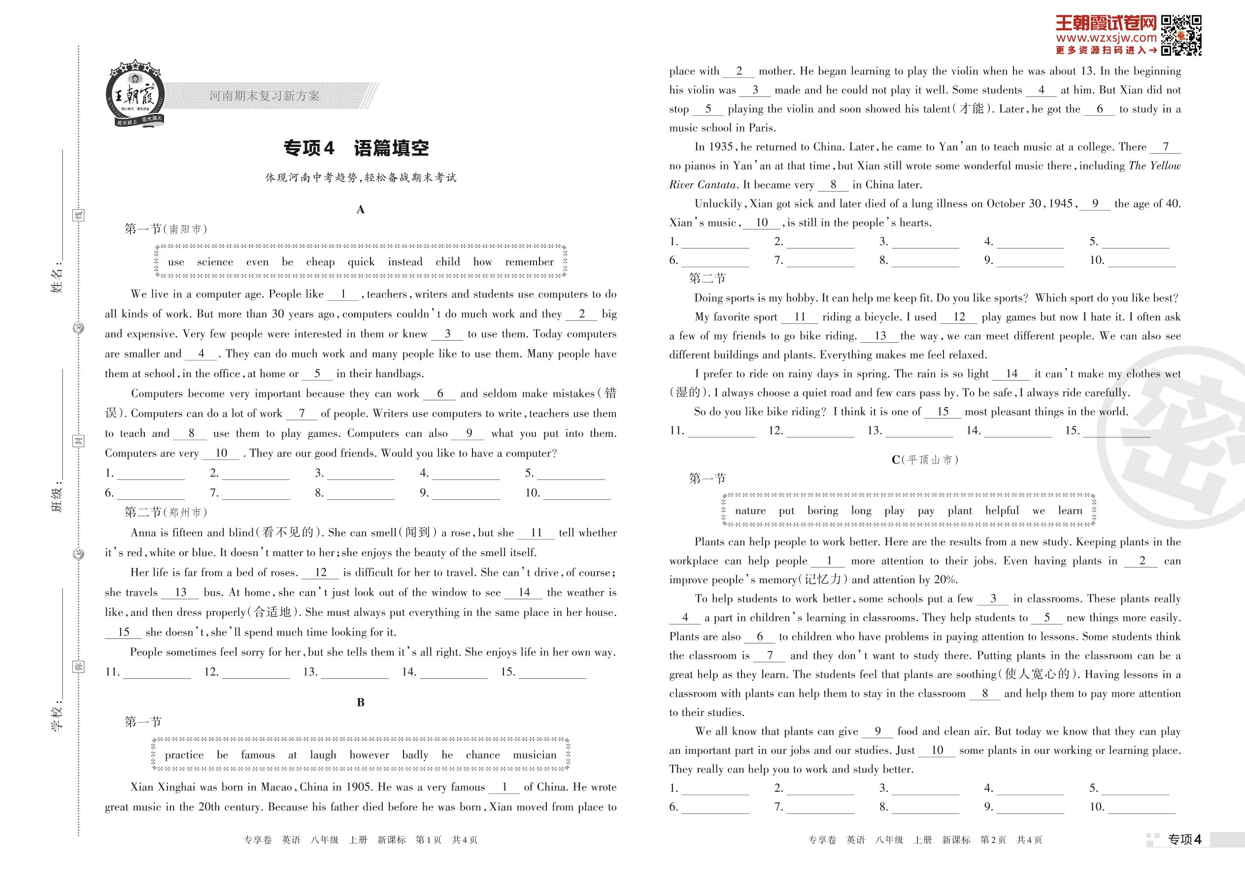 王朝霞期末专项卷——语篇填空八年级上册英语(新课标版)_R221127131229972【4】