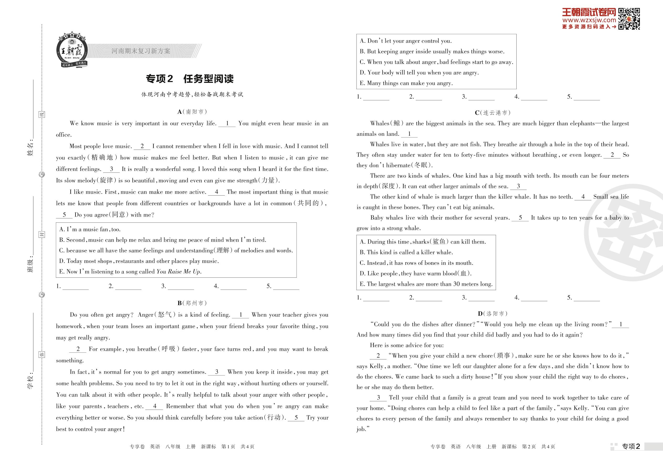 王朝霞期末专项卷——任务型阅读八年级上册英语(新课标版)_R221127131229255【2】