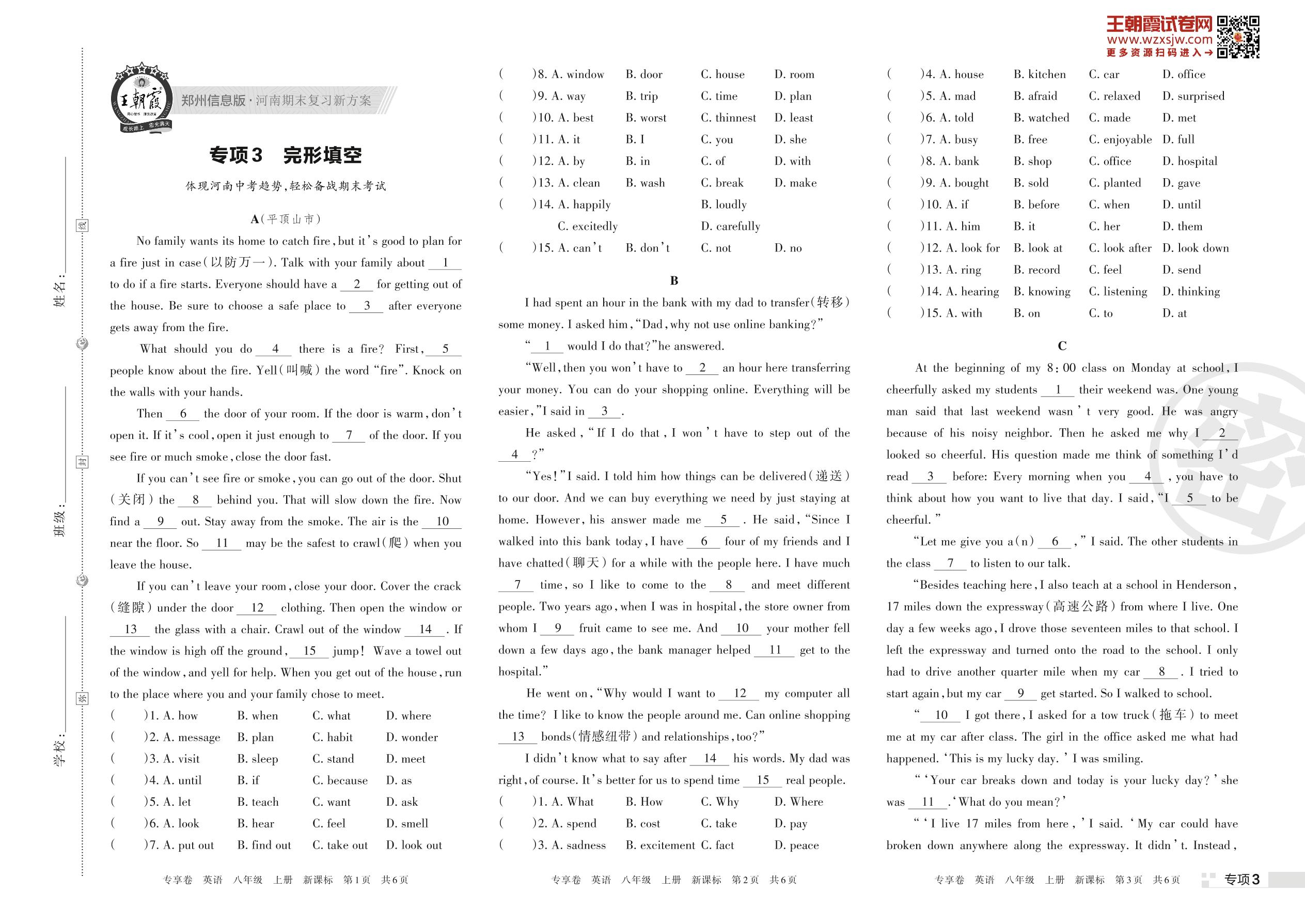 王朝霞期末专项卷——完形填空八年级上册英语(新课标版)_R221127131229091【3】