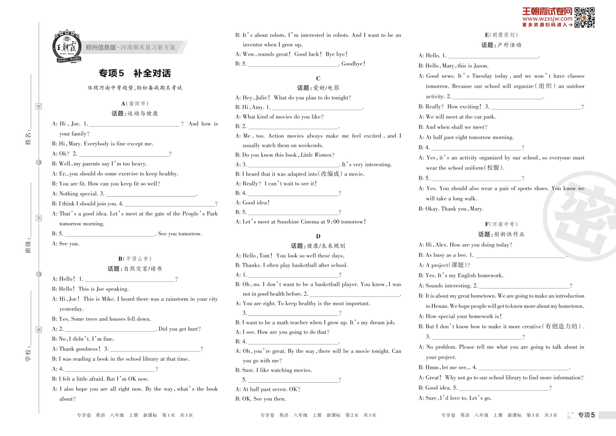 王朝霞期末专项卷——补全对话八年级上册英语(新课标版)_R221127131230852【5】