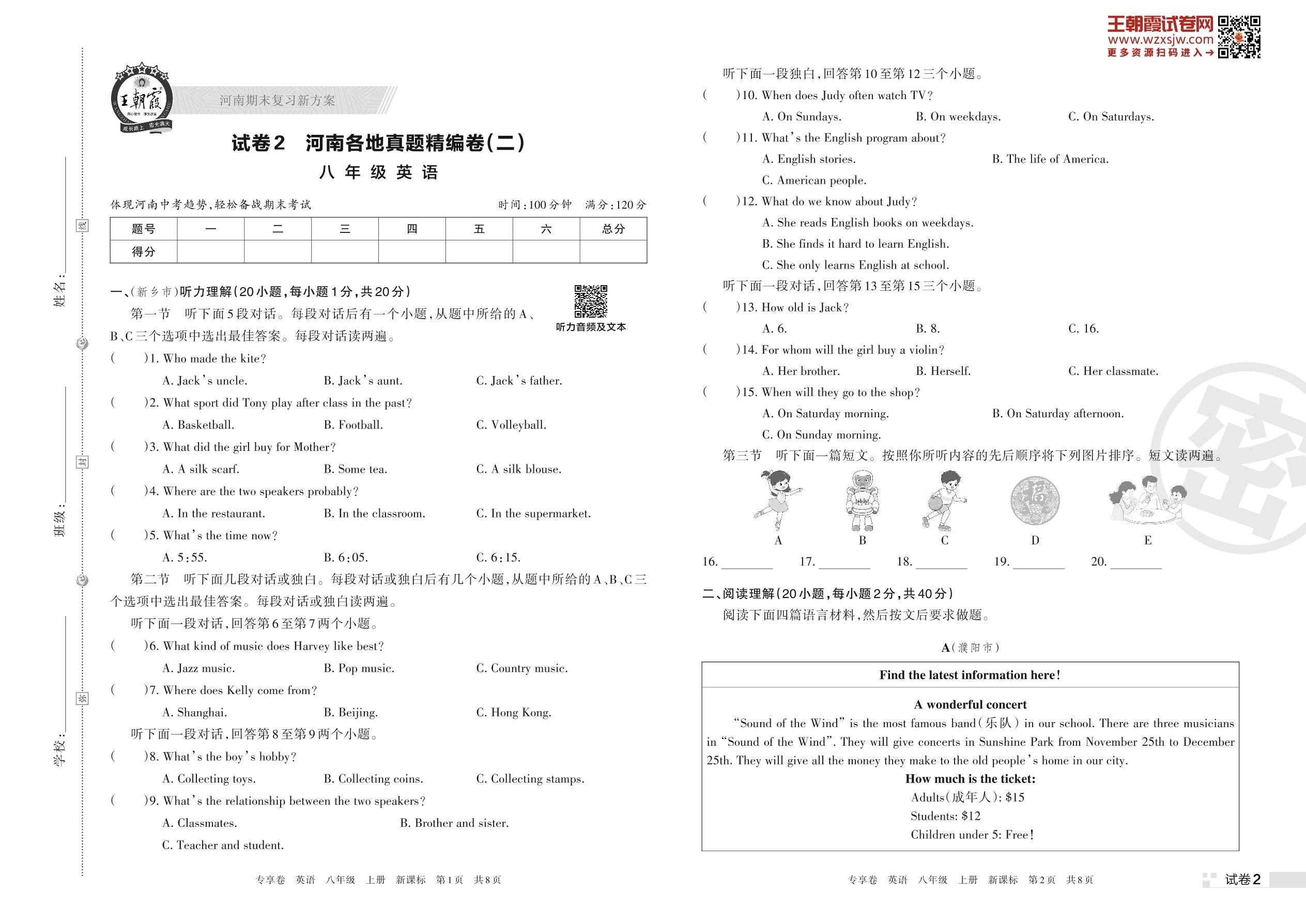 河南各地真题精编卷(二)八年级上册英语(新课标版)【2】