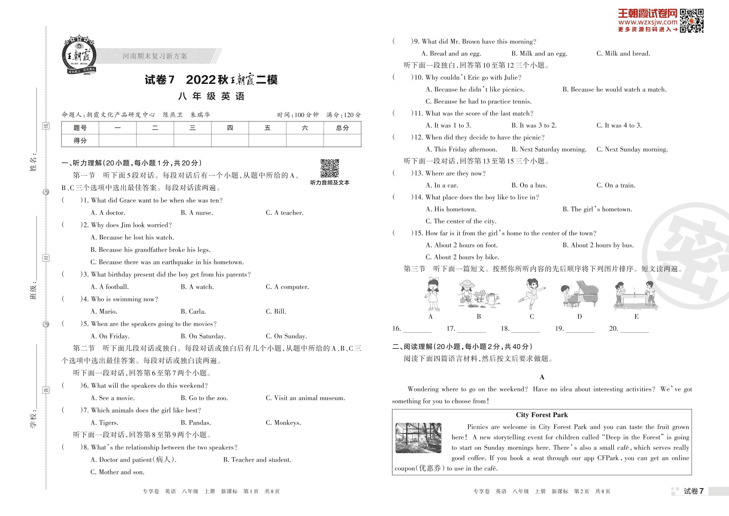 王朝霞期末模拟卷八年级上册英语(新课标版)_R221127131231334【7】