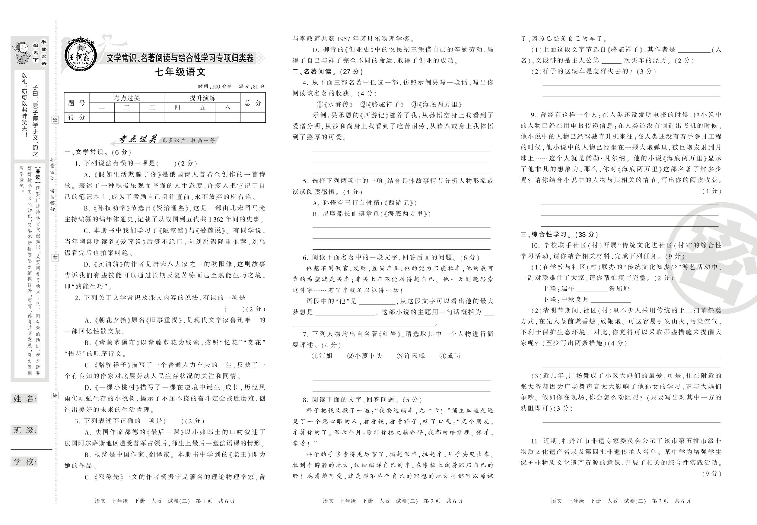 王朝霞期末专项卷七年级下册语文(人教版)_R210802141010【2】