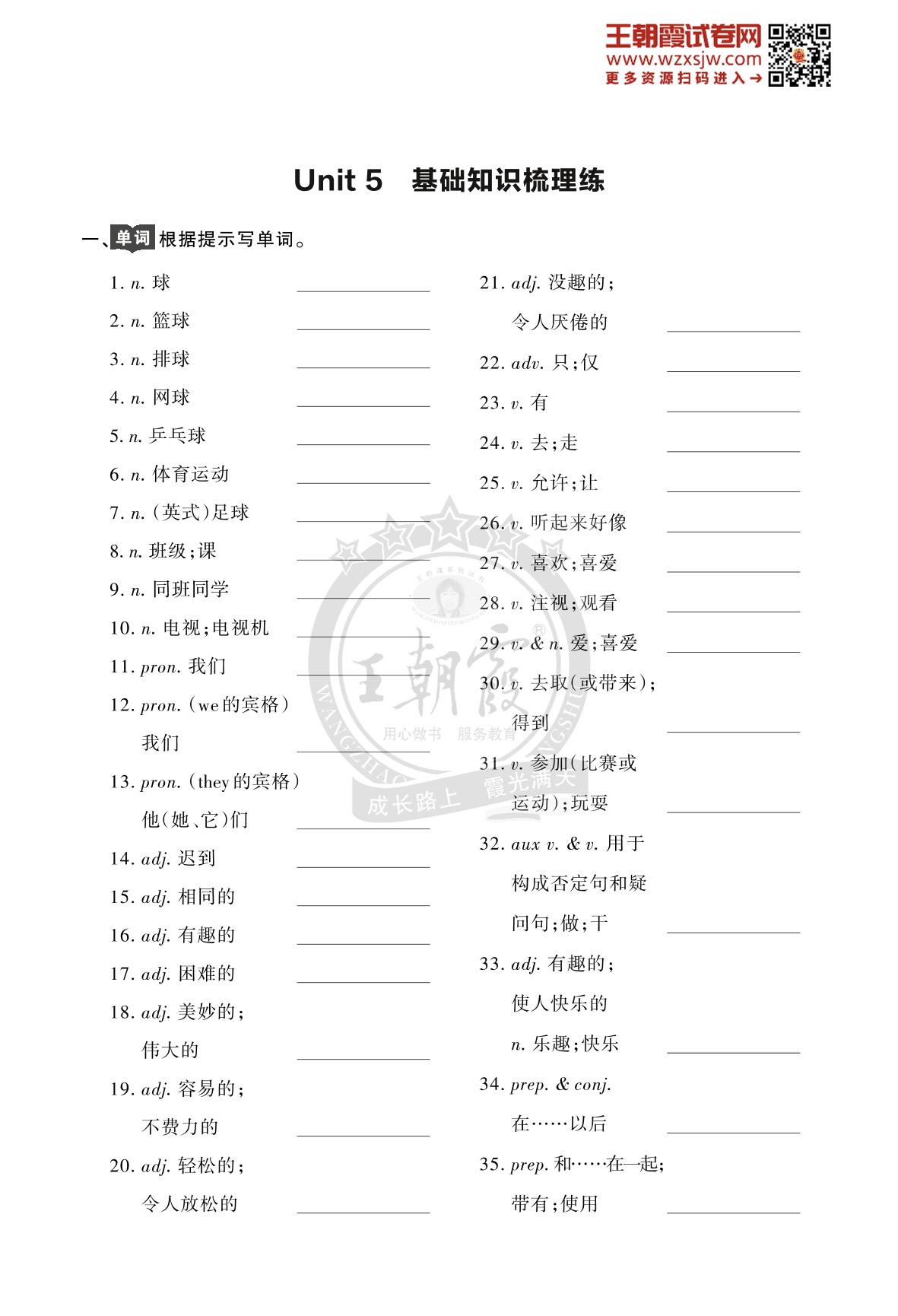 王朝霞期末过基础——Unit 5 基础知识梳理练七年级上册英语(人教版)