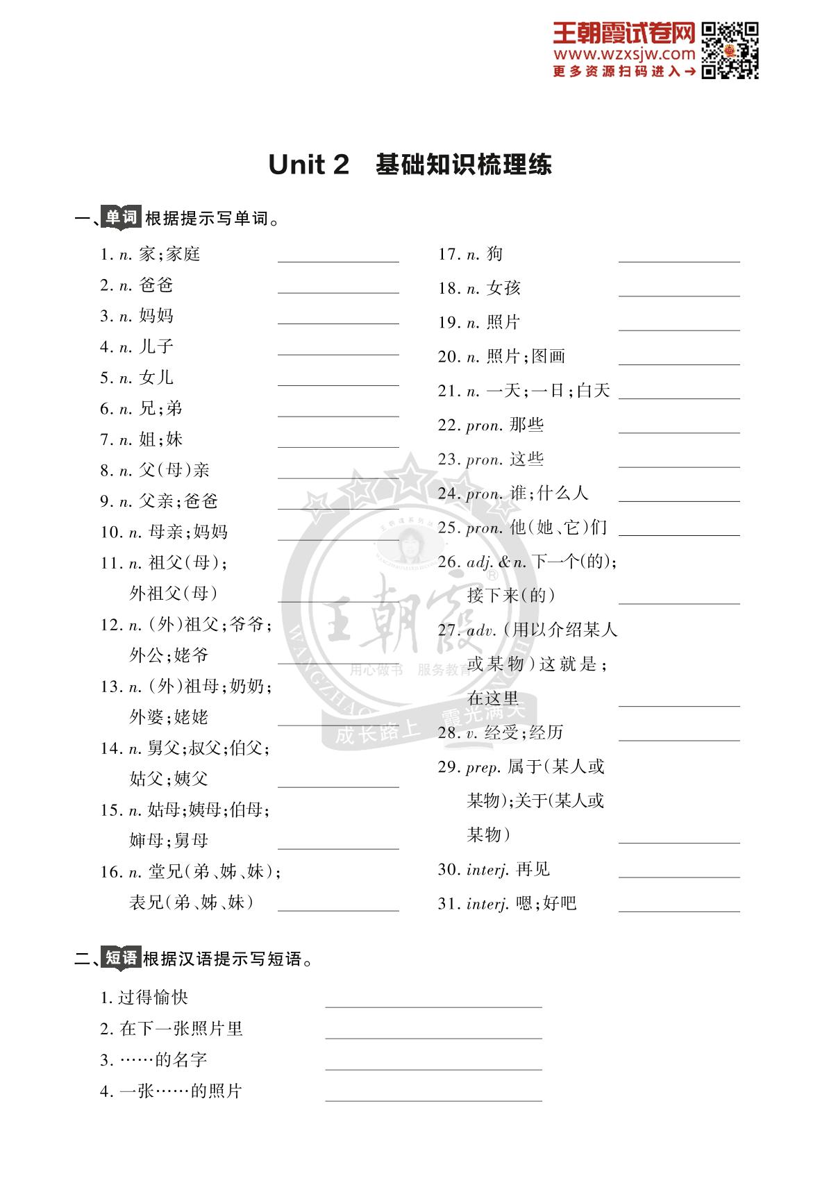王朝霞期末过基础——Unit 2 基础知识梳理练七年级上册英语(人教版)