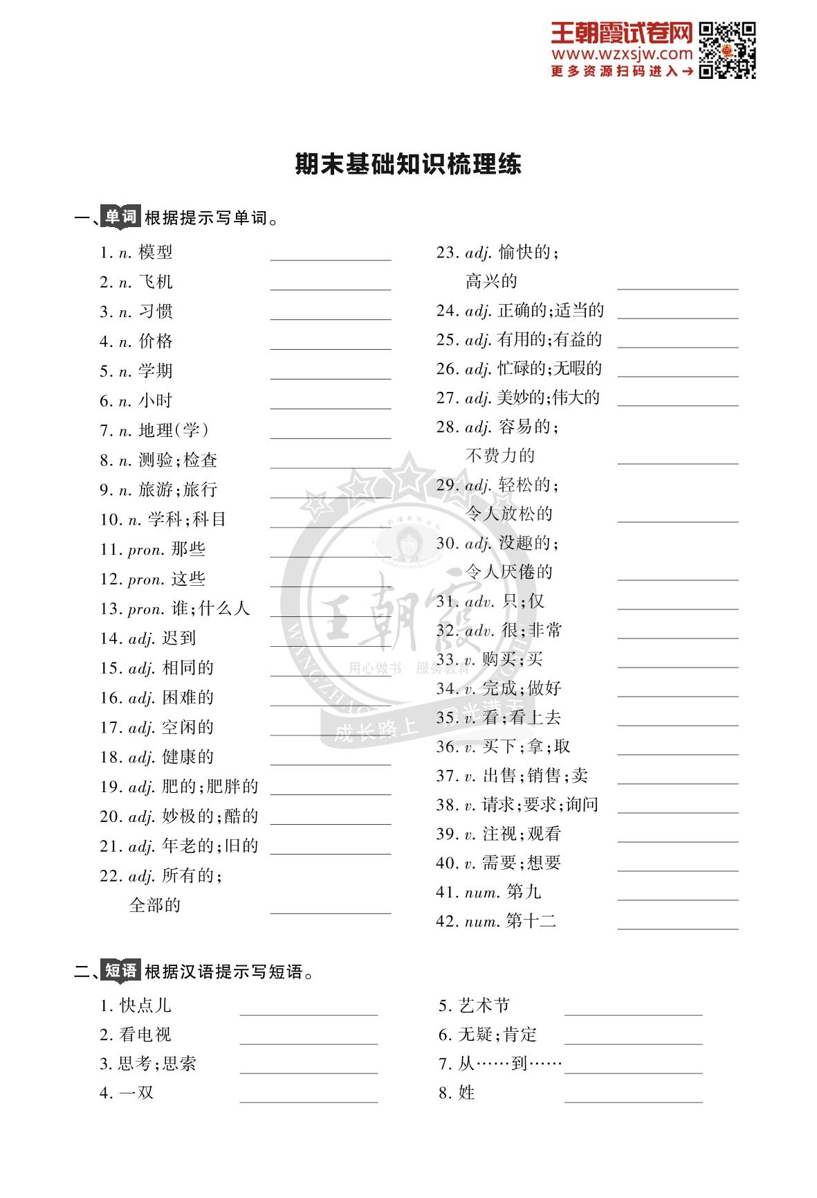 王朝霞期末过基础——期末基础知识梳理练七年级上册英语(人教版)