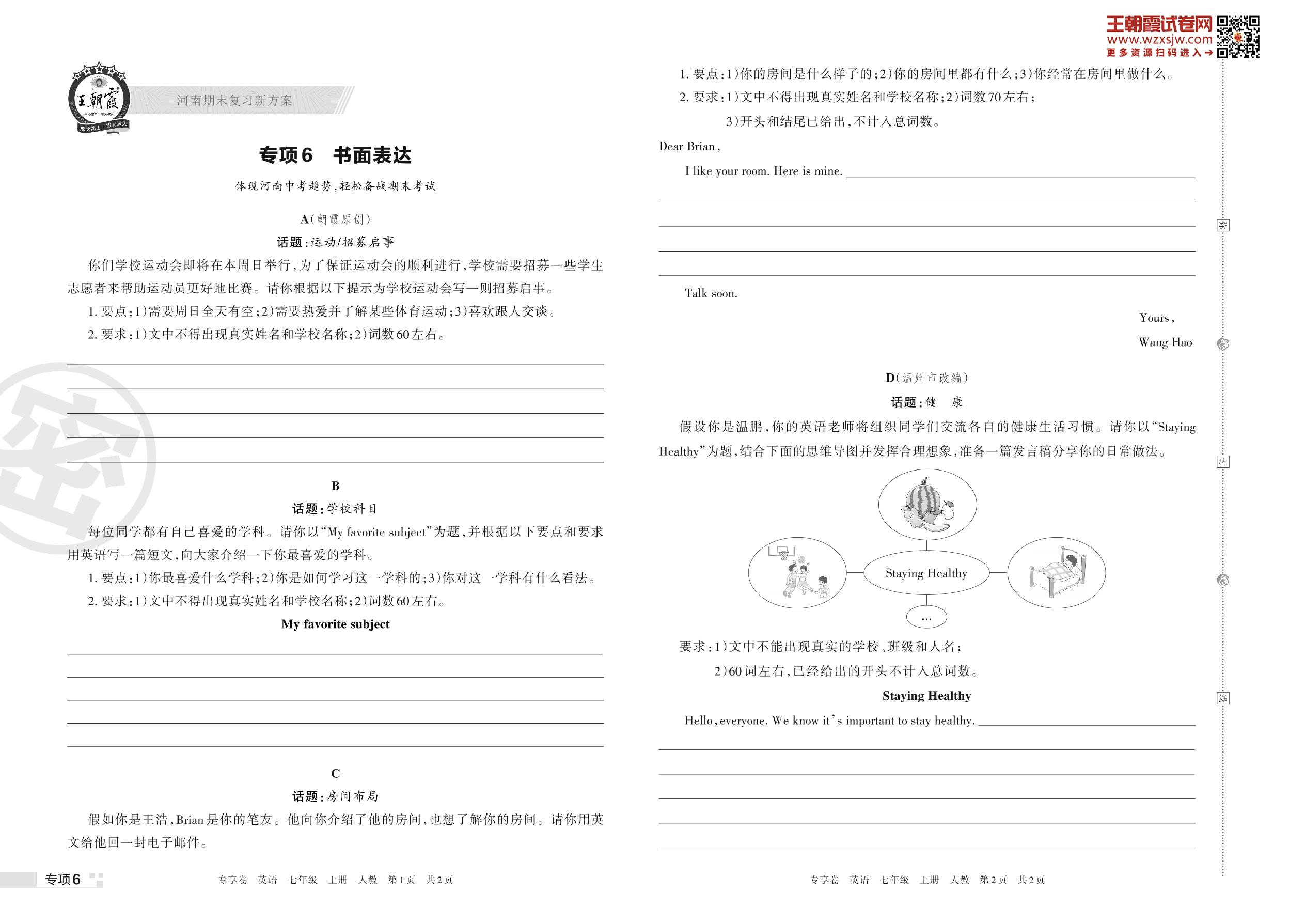 王朝霞期末专项卷——书面表达七年级上册英语(人教版)_R221127133335638【6】