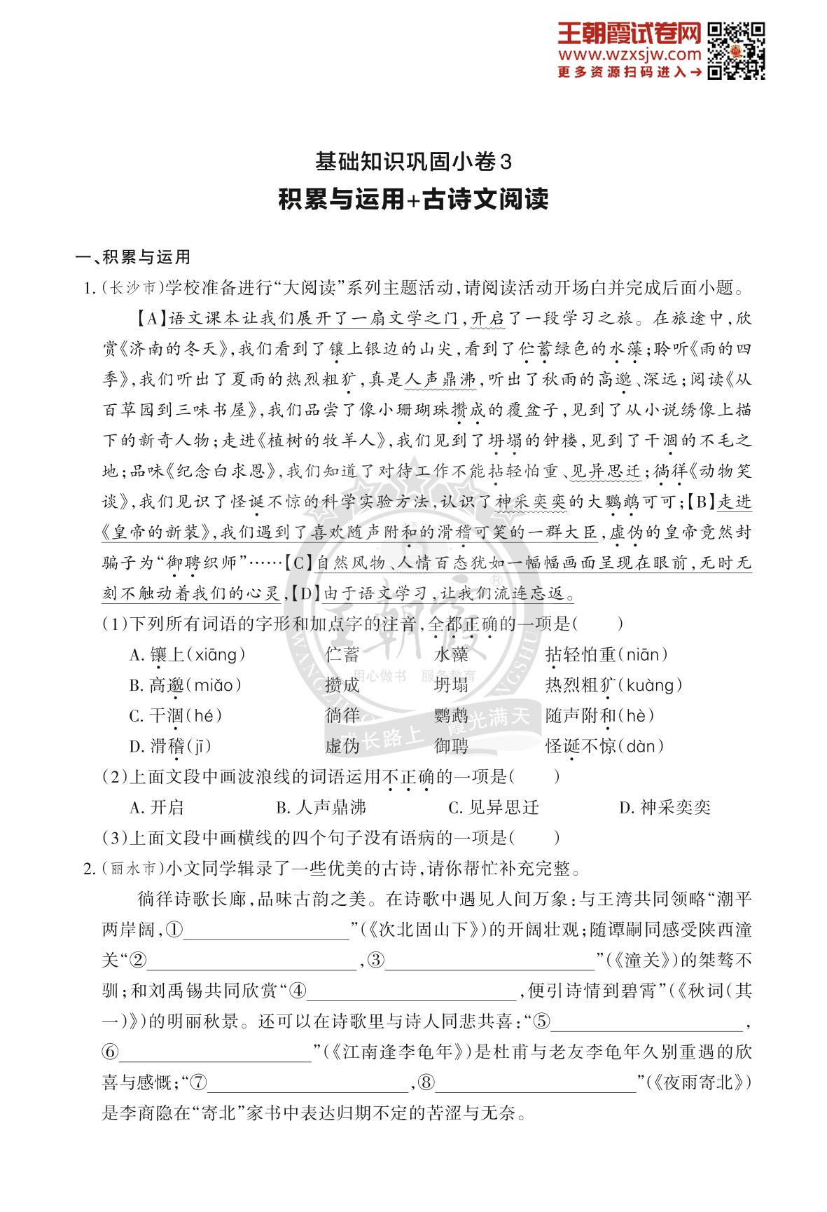 王朝霞期末过基础——基础知识巩固小卷3七年级上册语文(人教版)