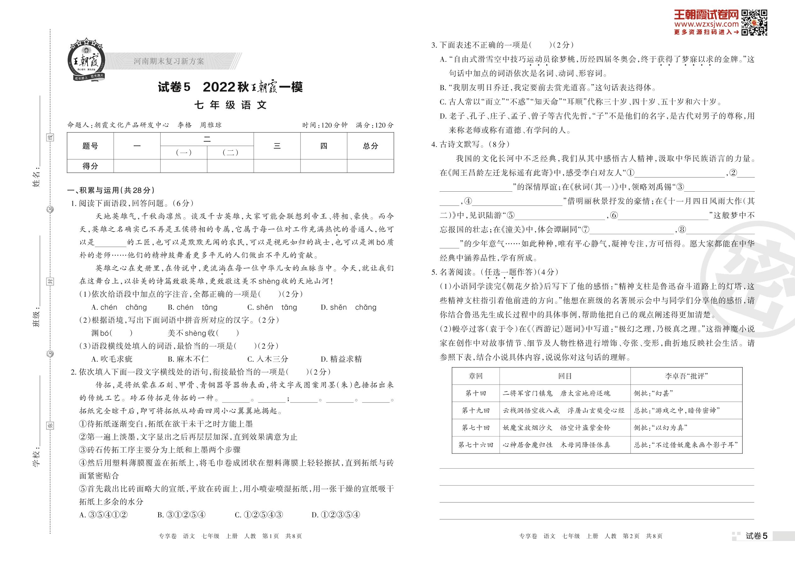 王朝霞期末模拟卷七年级上册语文(人教版)_R221127140236203【5】