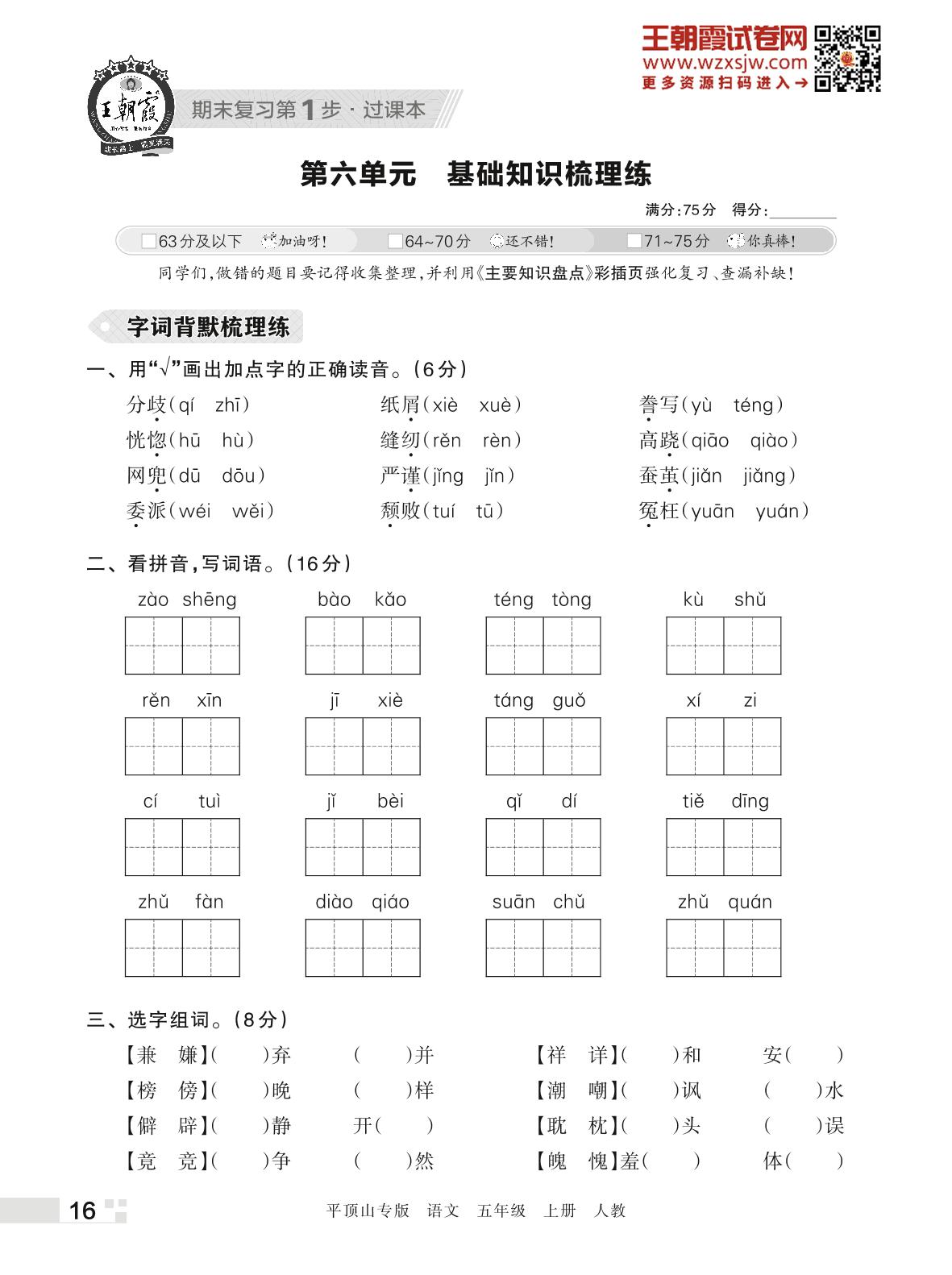 王朝霞期末过课本——第六单元 基础知识梳理练五年级上册语文(人教版)_R221127175315355