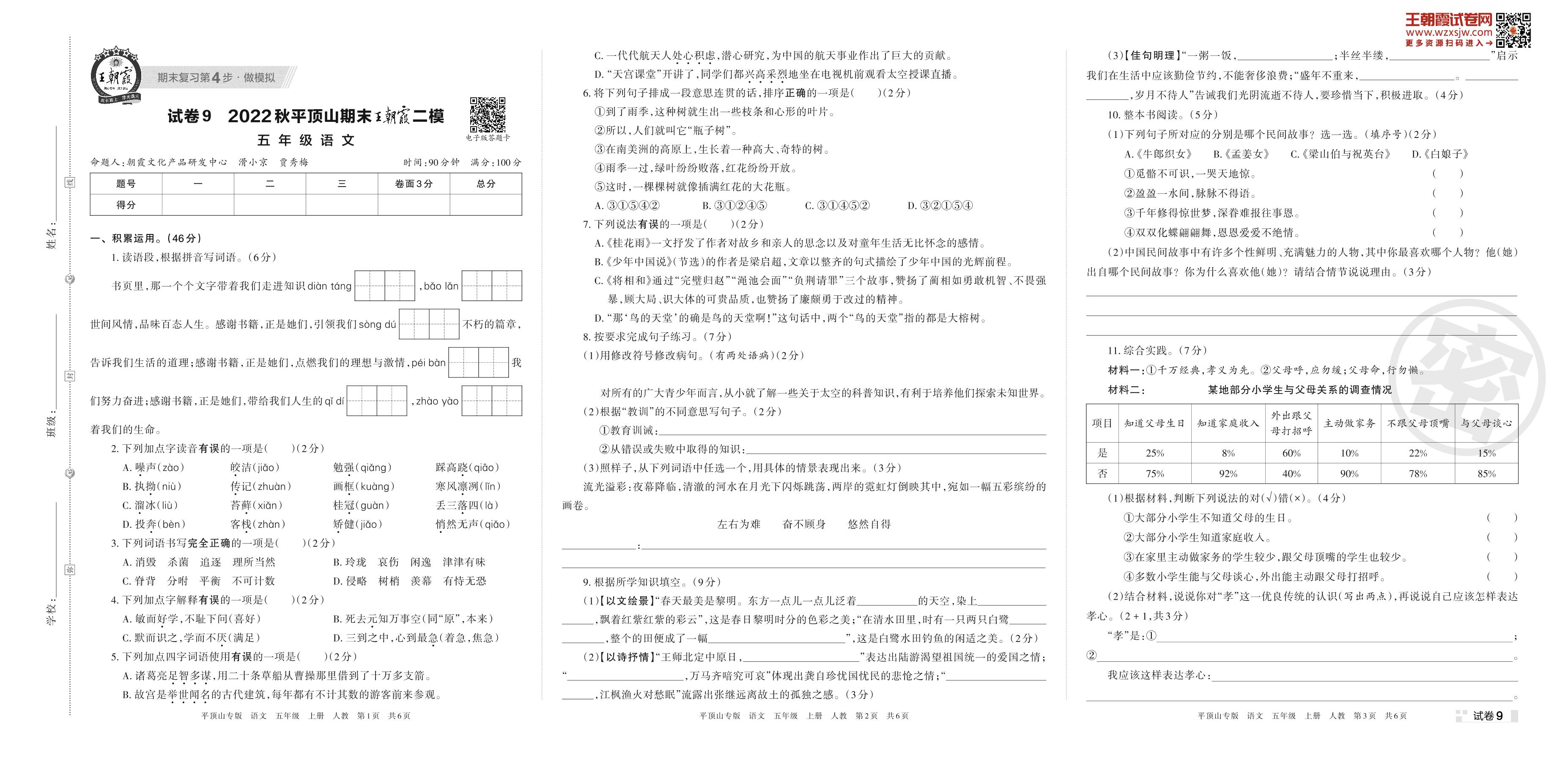 王朝霞期末模拟卷五年级上册语文(人教版)_R221127175317052【9】