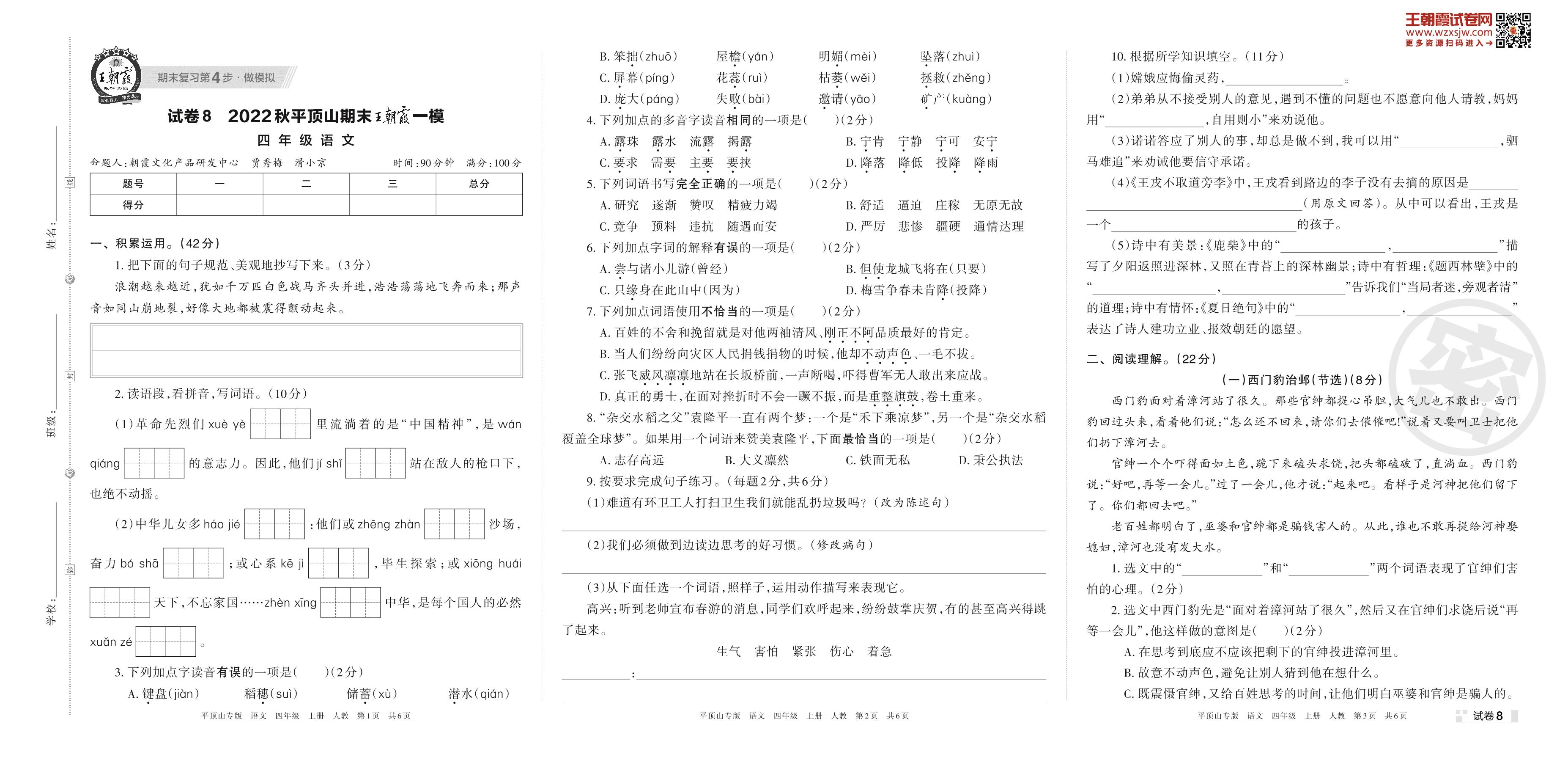 王朝霞期末模拟卷四年级上册语文(人教版)_R221127175912494【8】