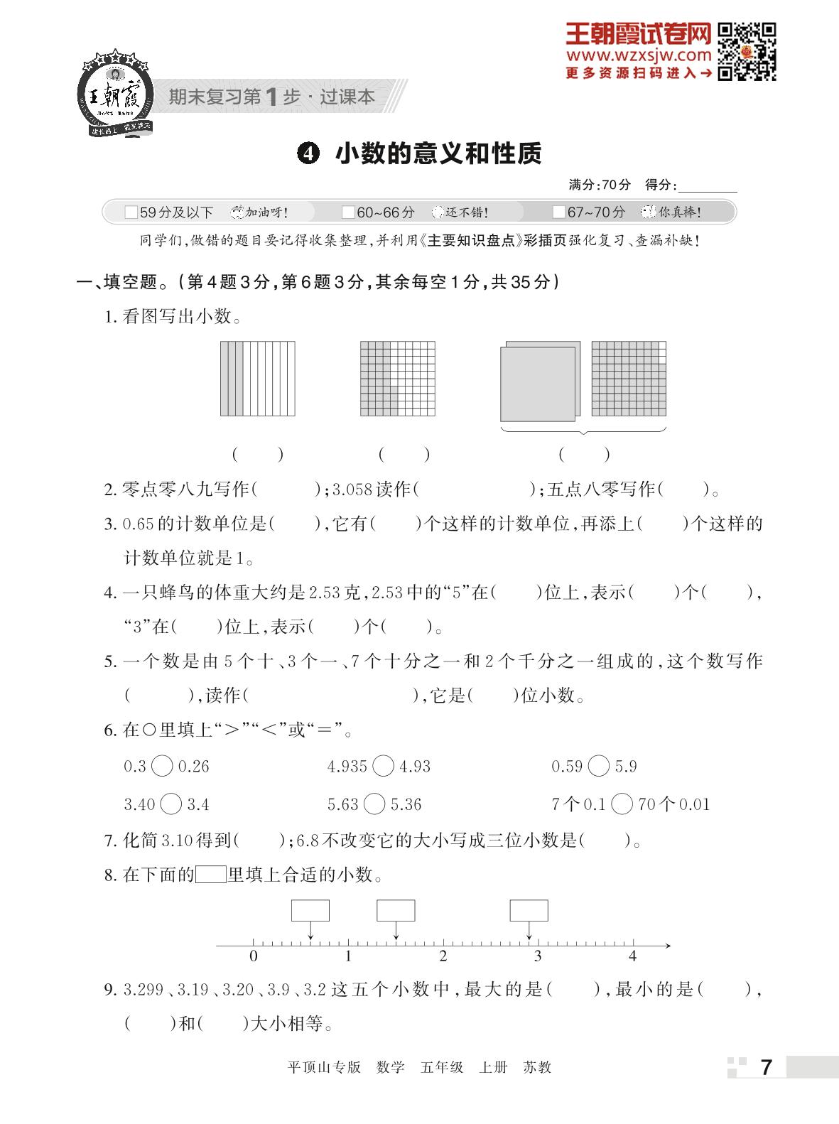 王朝霞期末过课本——4 小数的意义和性质五年级上册数学(苏教版)_R221128135631463