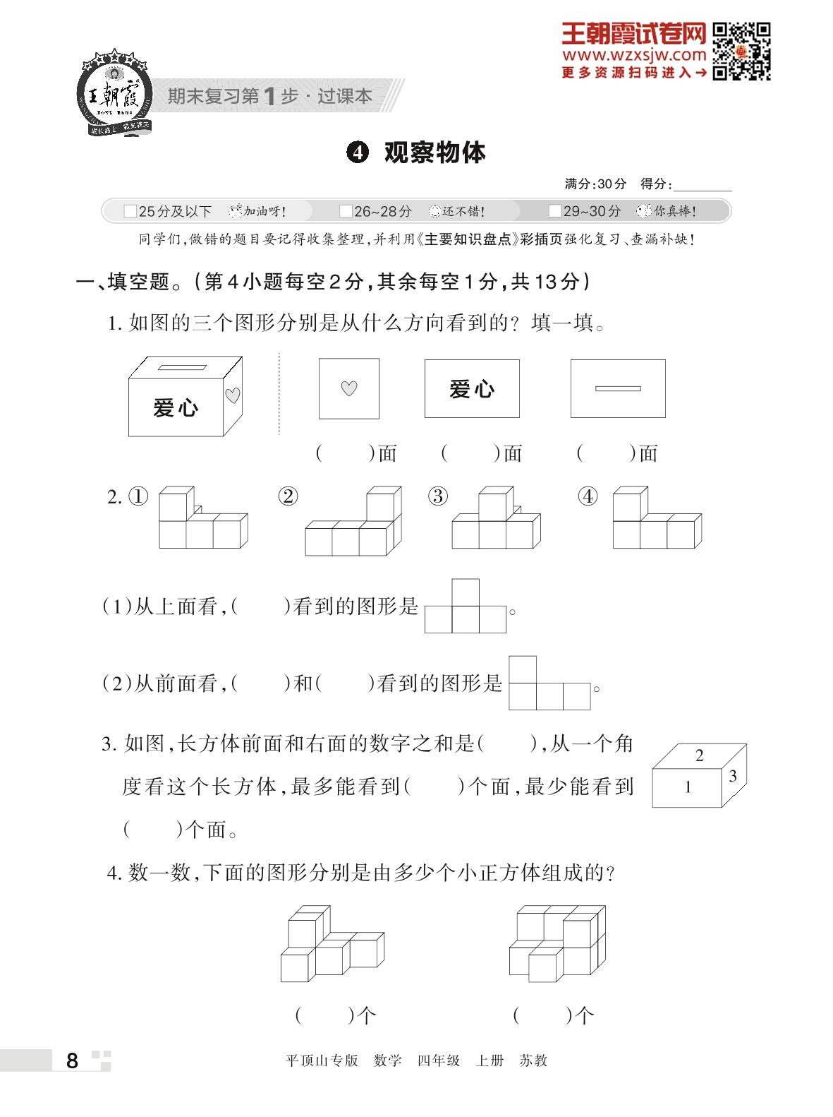王朝霞期末过课本——4 观察物体四年级上册数学(苏教版)_R221128142720789