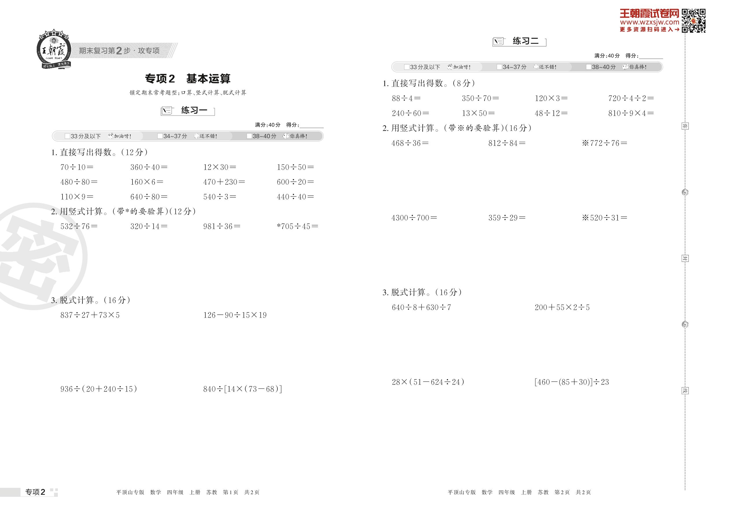 王朝霞期末专项卷——基本运算四年级上册数学(苏教版)_R221128142721913【2】