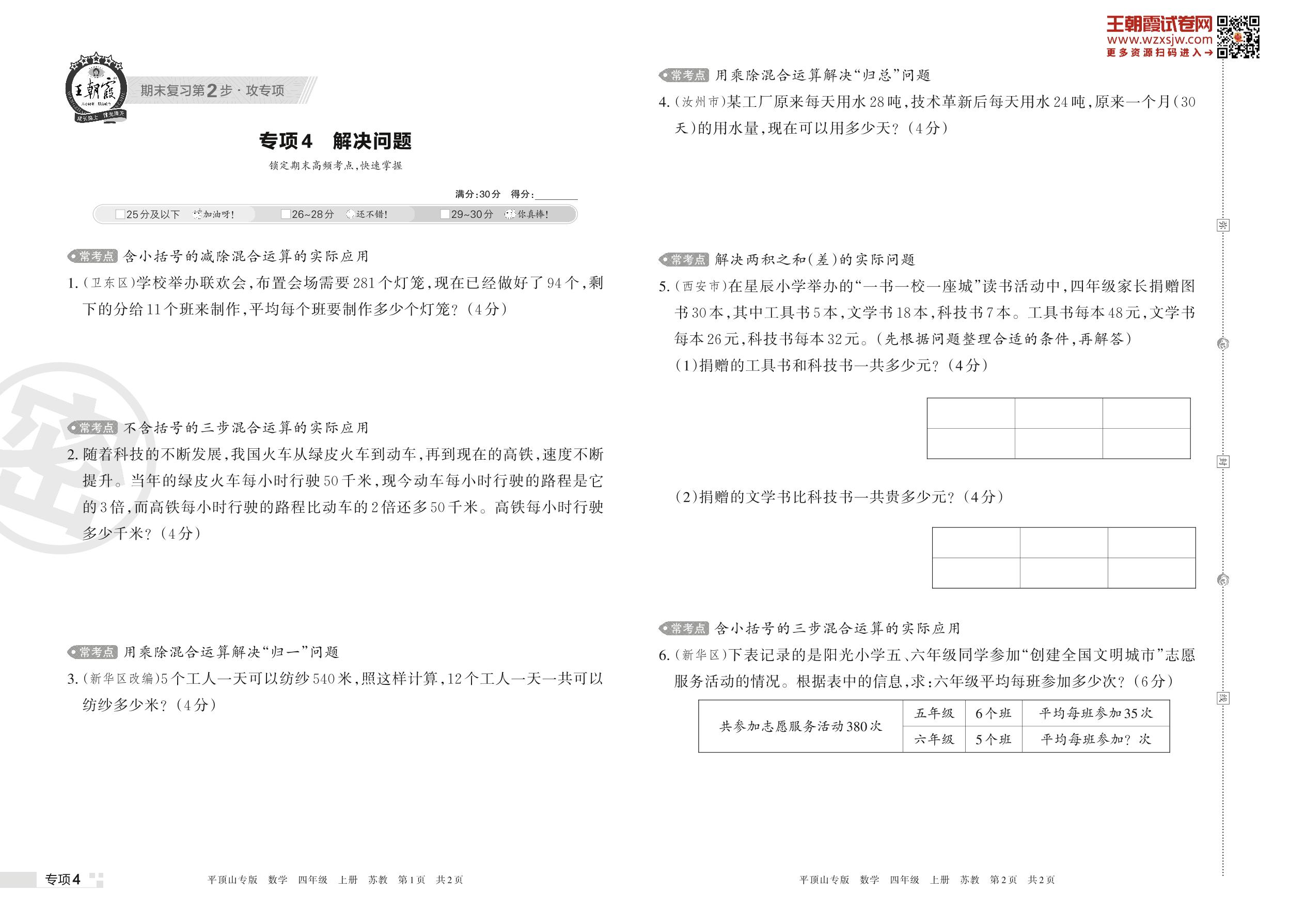 王朝霞期末专项卷——解决问题四年级上册数学(苏教版)_R221128142721635【4】