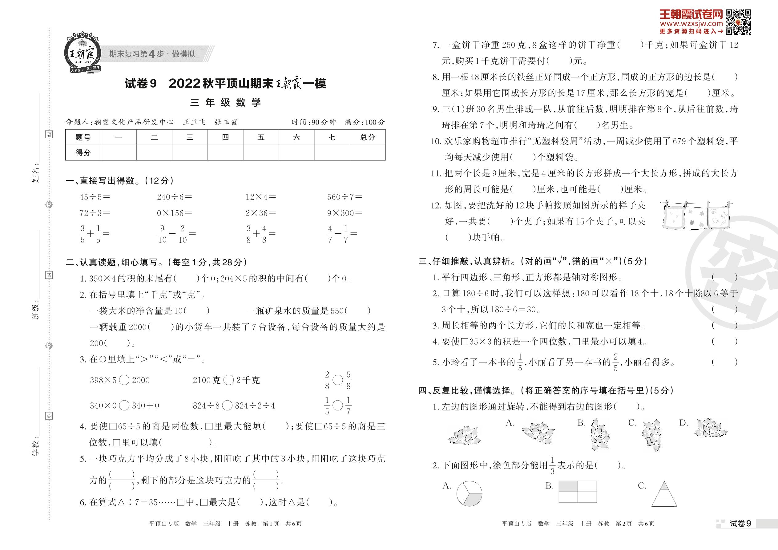 王朝霞期末模拟卷三年级上册数学(苏教版)_R221128153511192【9】