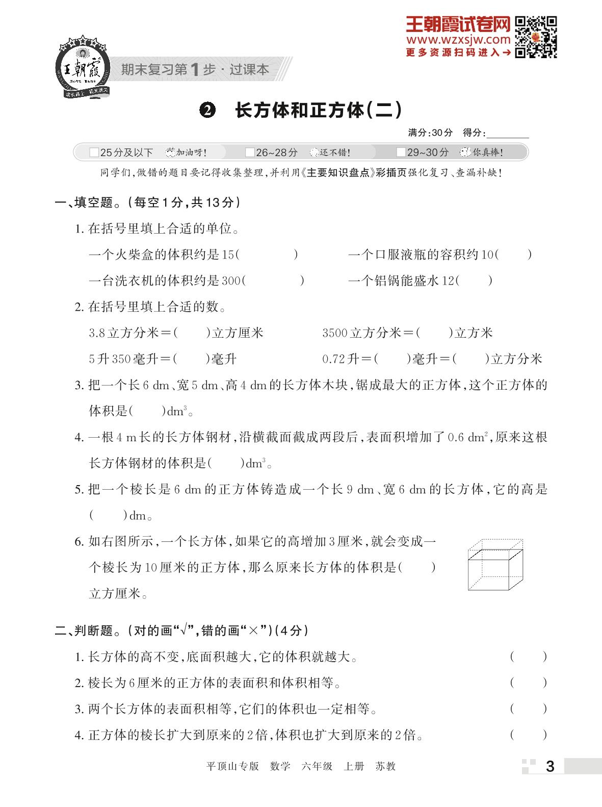 王朝霞期末过课本——2 长方体和正方体(二)六年级上册数学(苏教版)_R221128155415055