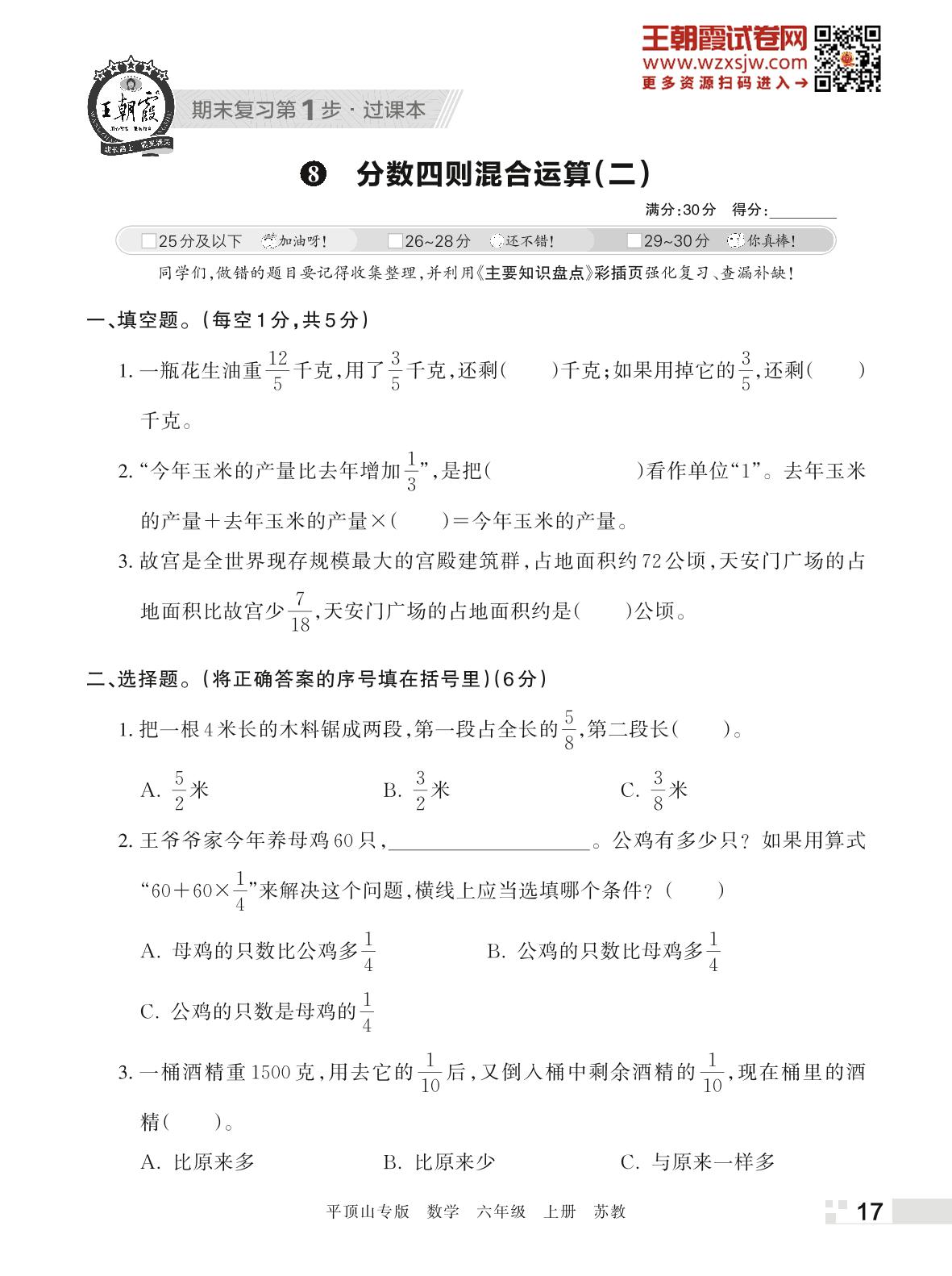 王朝霞期末过课本——8 分数四则混合运算(二)六年级上册数学(苏教版)_R221128155415153