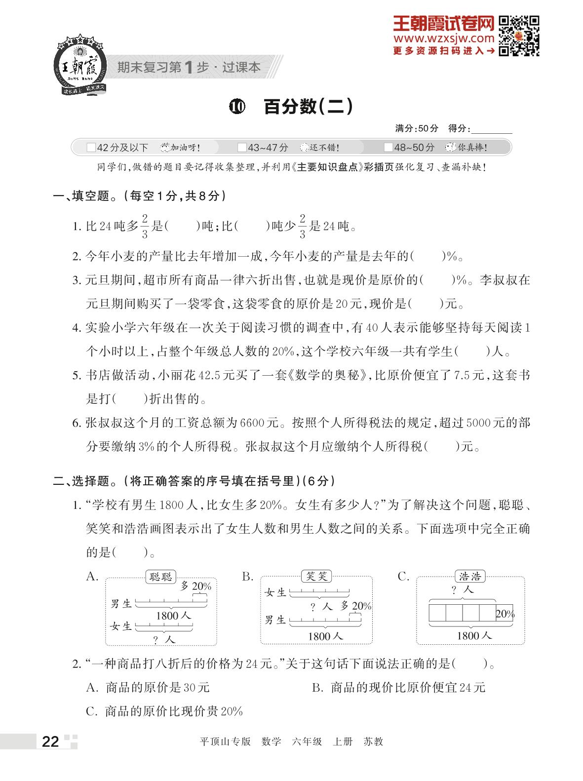 王朝霞期末过课本——10 百分数(二)六年级上册数学(苏教版)_R221128155415625