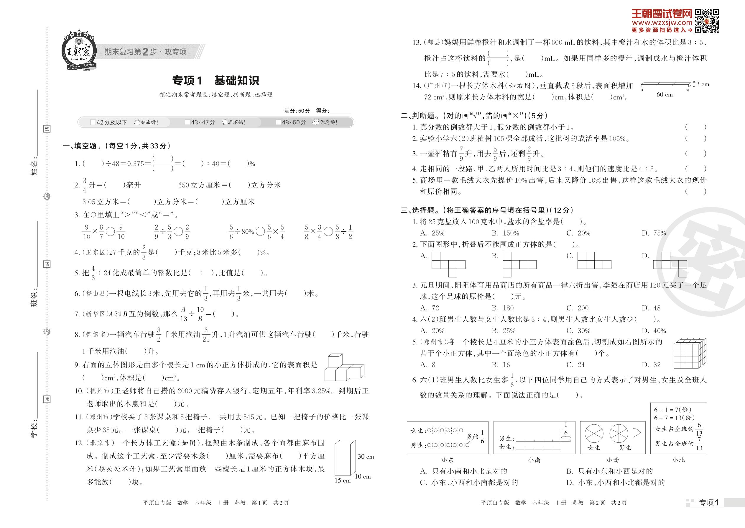 王朝霞期末专项卷——基础知识六年级上册数学(人教版)_R221128155416445【1】