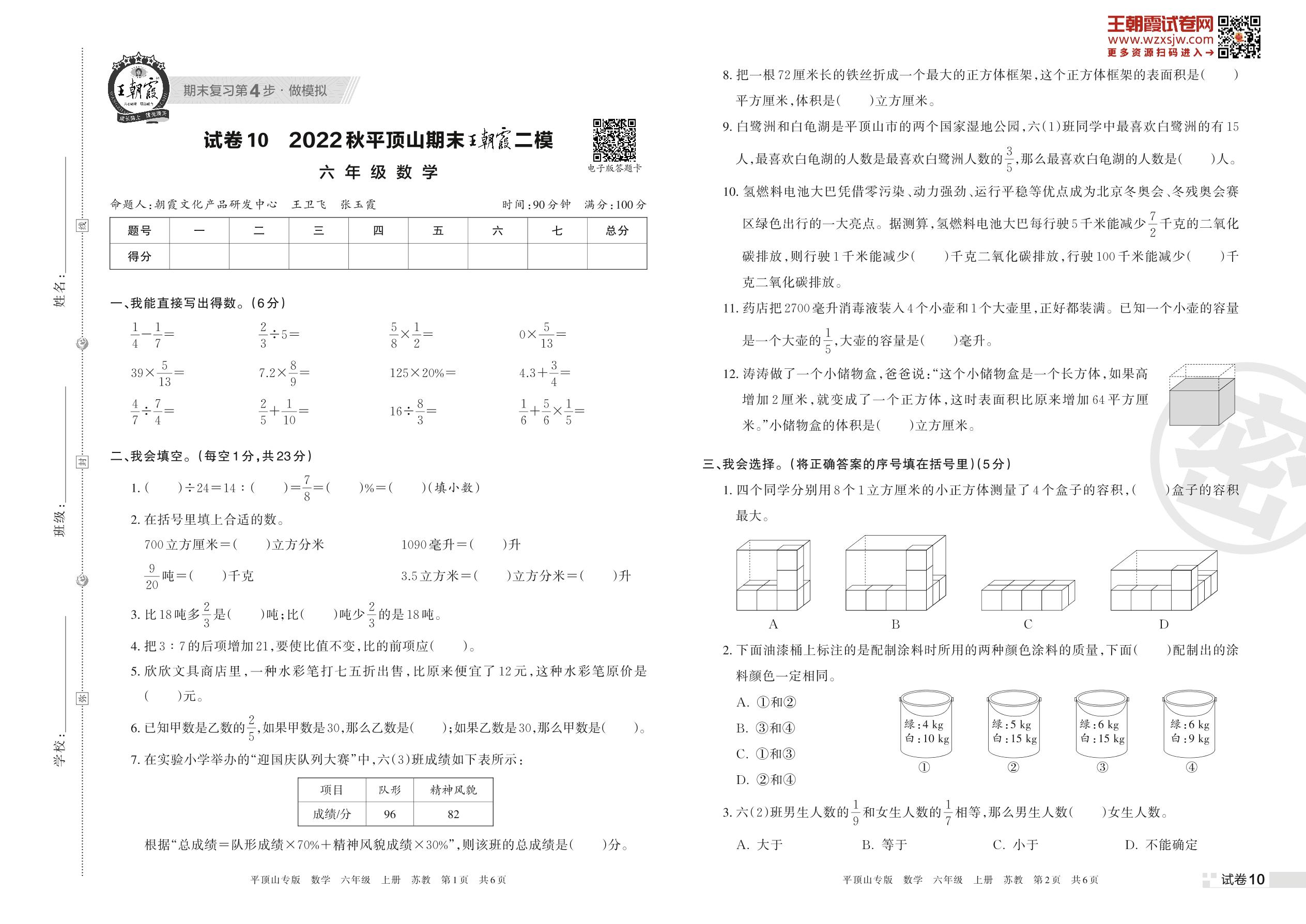 王朝霞期末模拟卷六年级上册数学(苏教版)_R221128155418327【10】