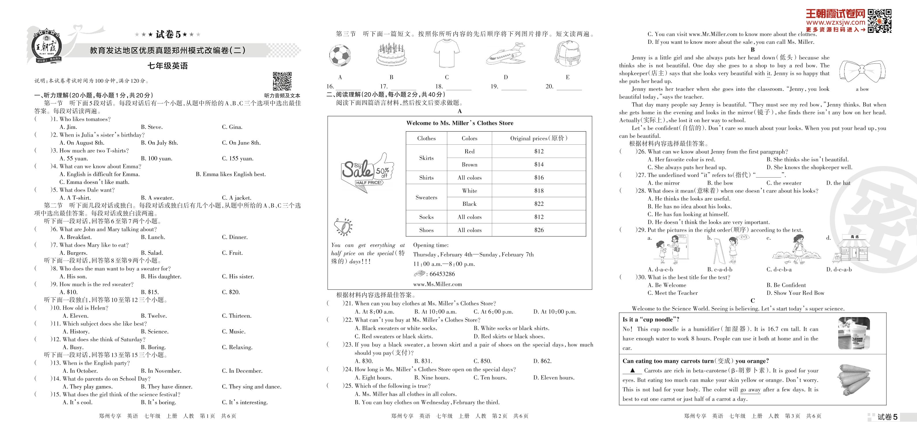 教育发达地区优质真题郑州模式改编卷(二)七年级上册英语(人教版)【5】