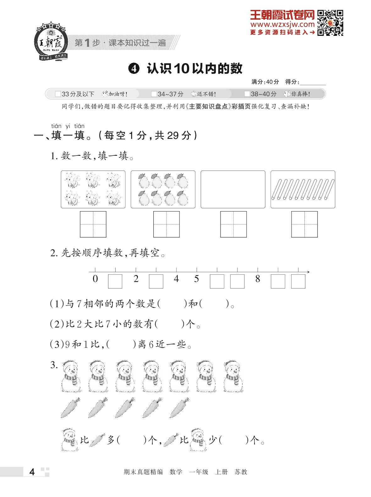 王朝霞期末过课本——4 认识10以内的数一年级上册数学(苏教版)_R221128163151873