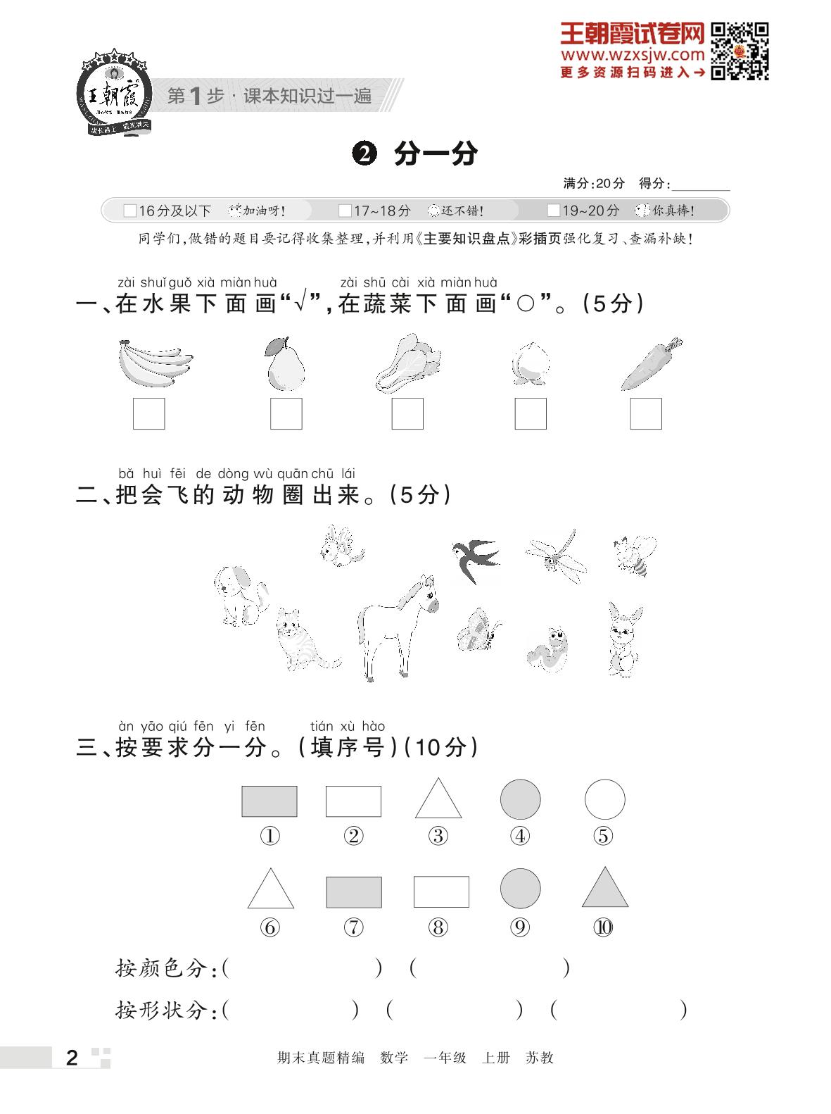 王朝霞期末过课本——2 分一分一年级上册数学(苏教版)_R221128163152650