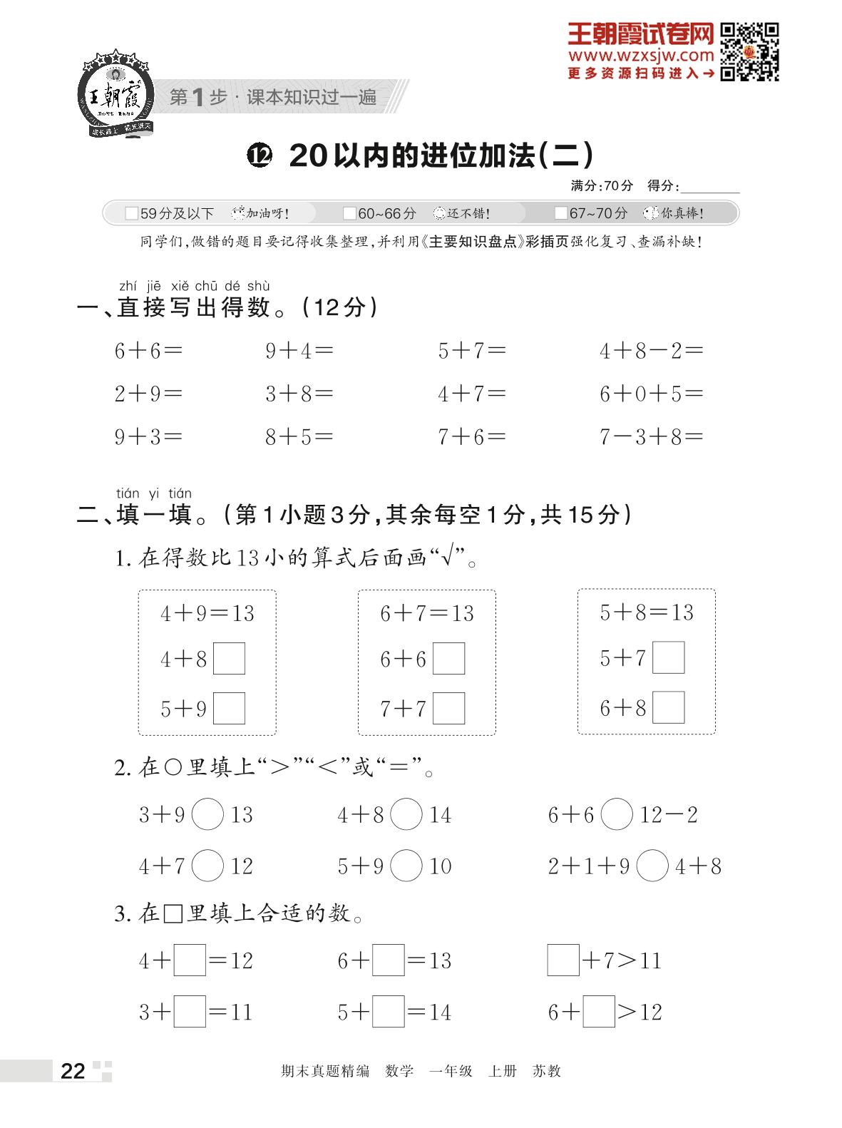 王朝霞期末过课本——12 20以内的进位加法(二)一年级上册数学(苏教版)_R221128163152623