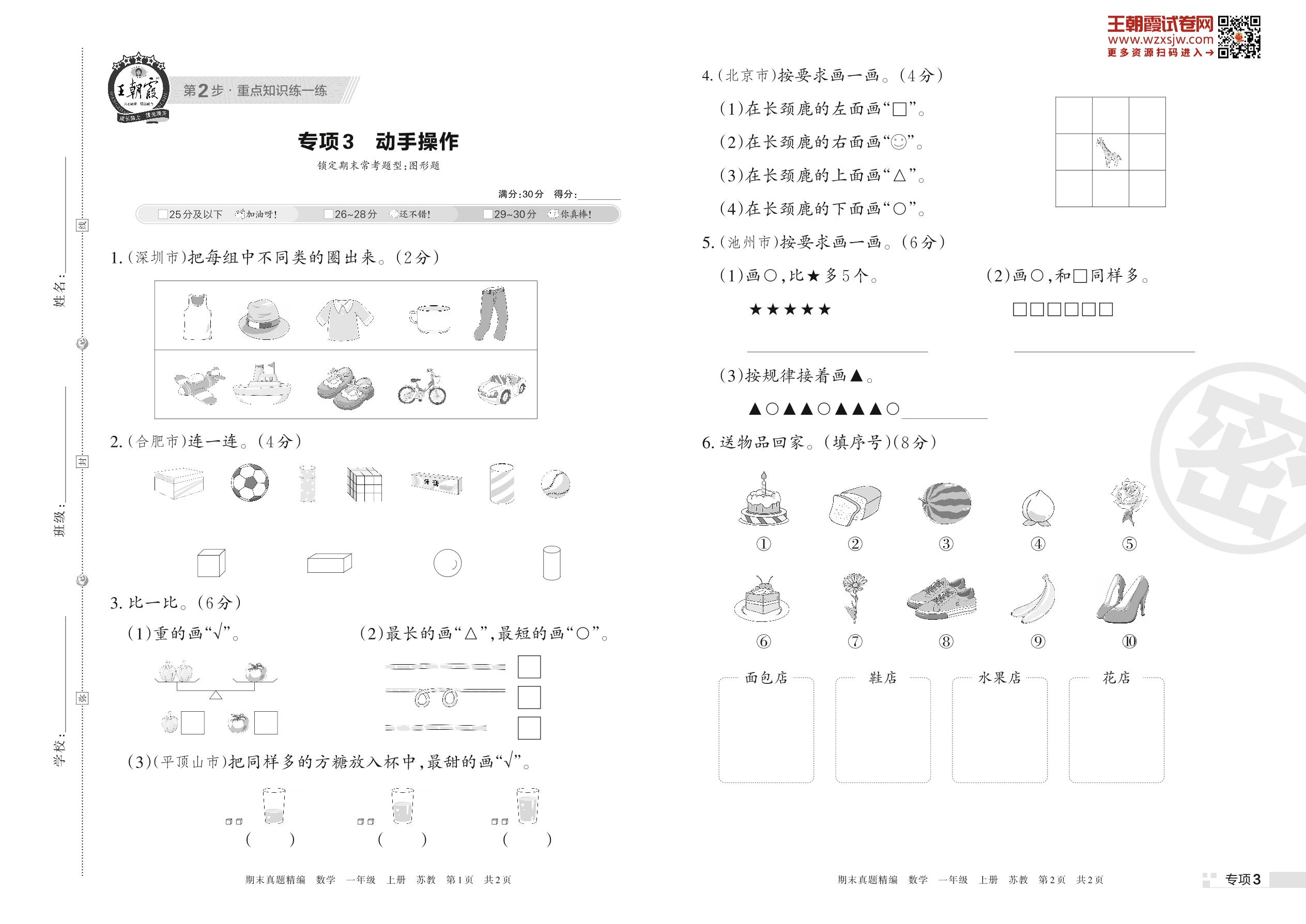 王朝霞期末专项卷——动手操作一年级上册数学(苏教版)_R221128163153907【3】